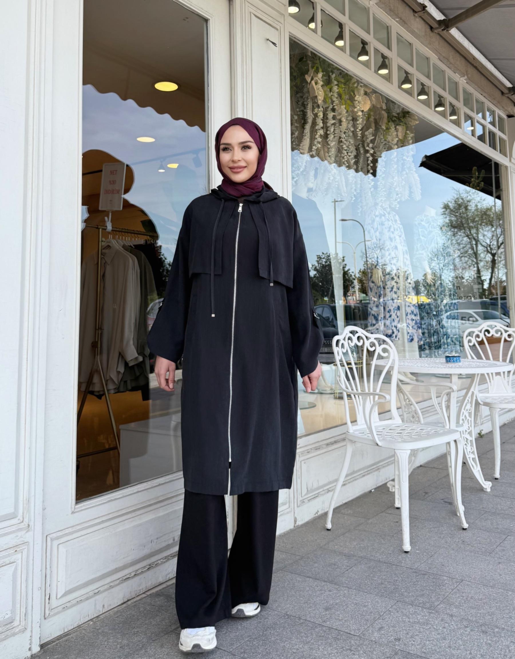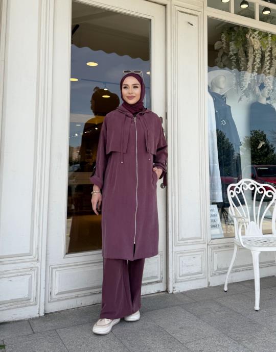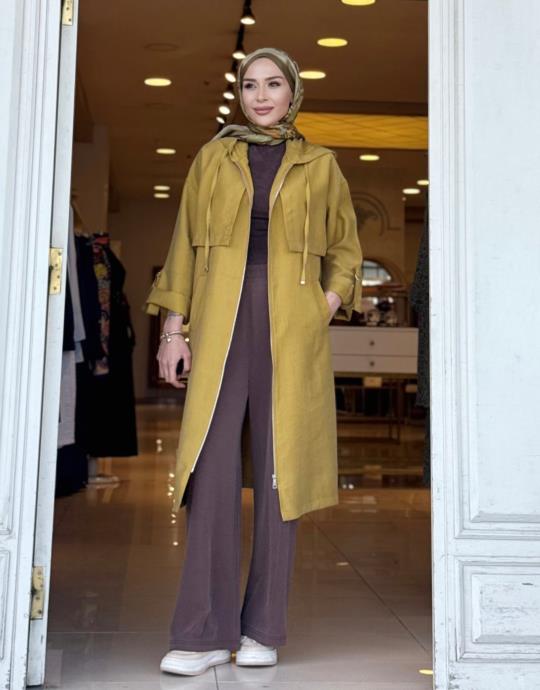 kadin KAPŞONLU ÇİFT YAKA KAP
