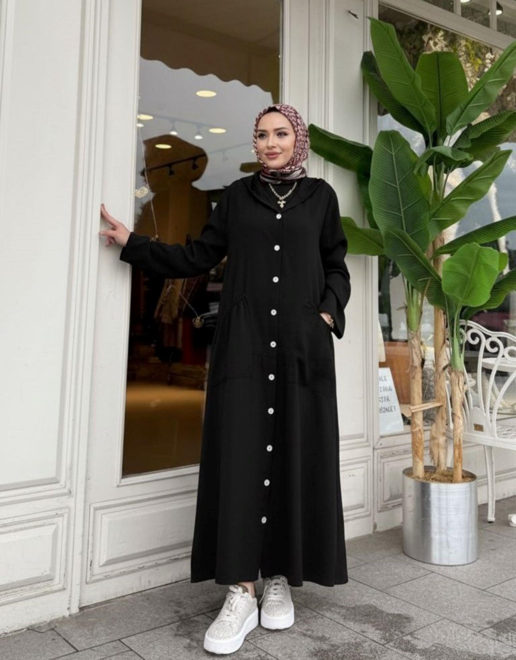 KAPÜŞONLU CEP DETAY KAP SİYAH
