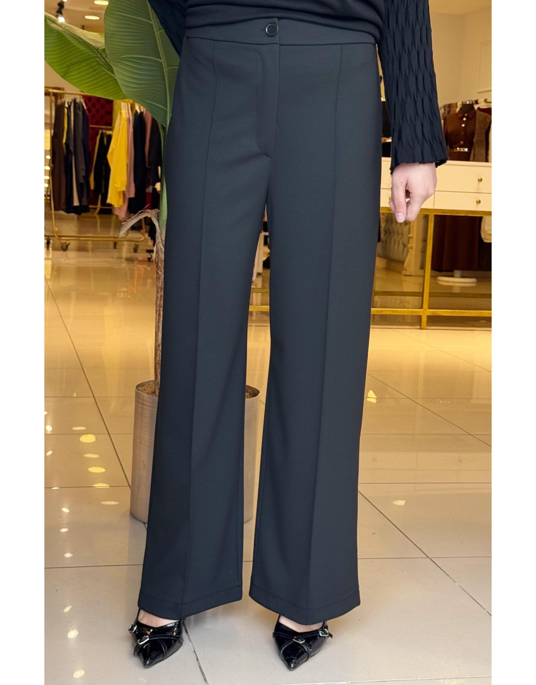 MONACO NERVÜRLÜ PALAZZO PANTOLON SİYAH