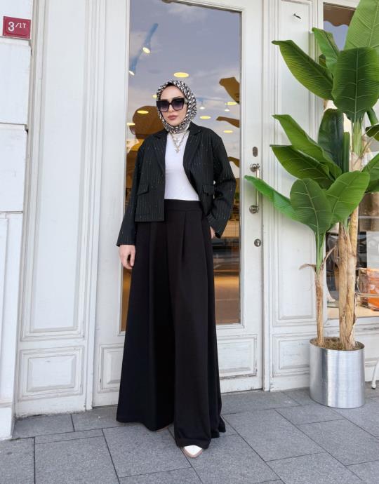ŞARDONLU ŞALVAR PANTOLON SİYAH