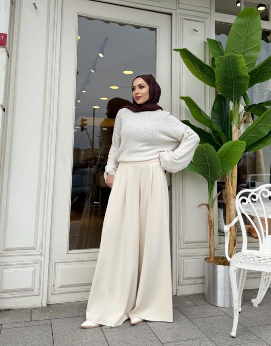PLİSE DETAY ETEKLİ PANTOLON BEJ