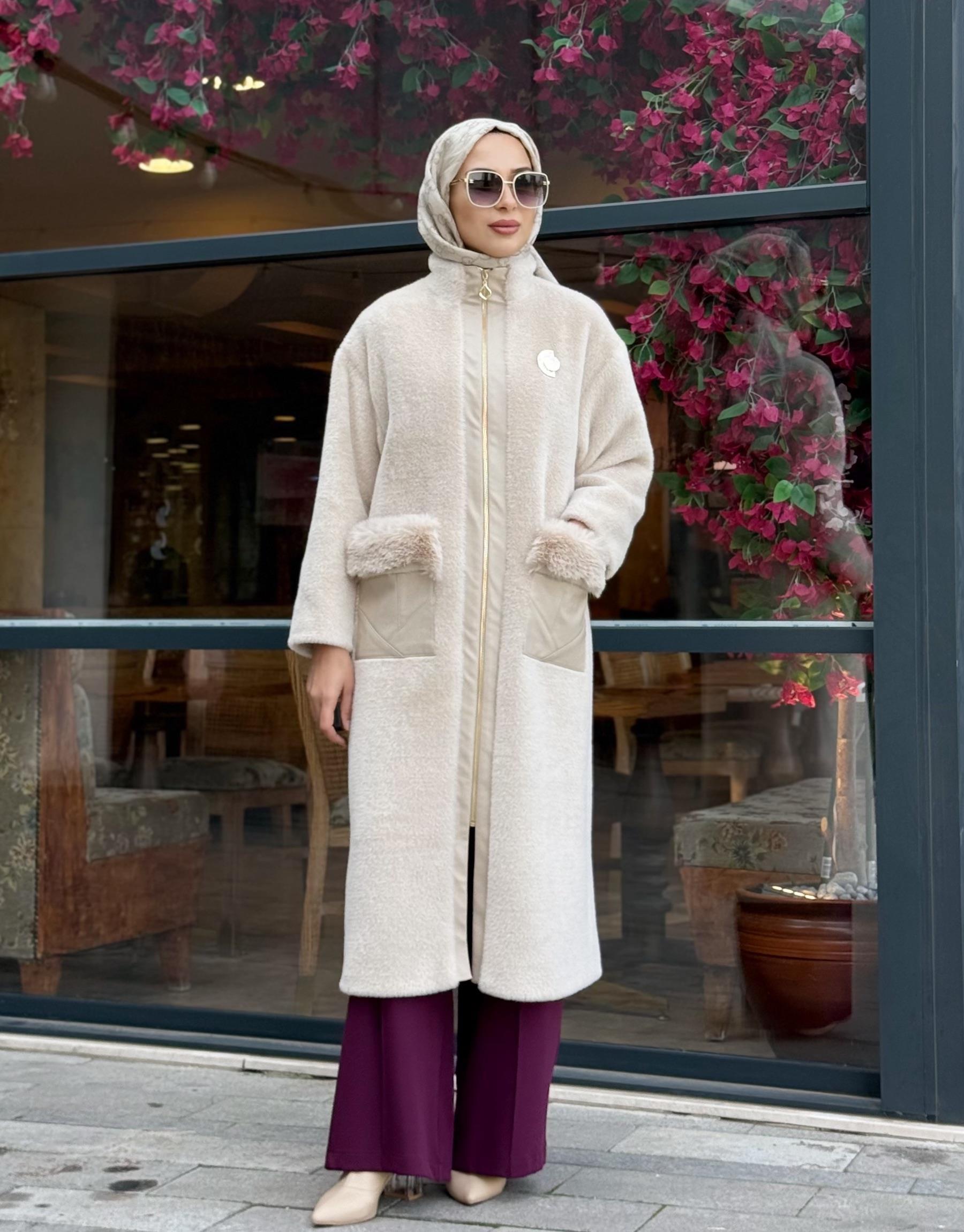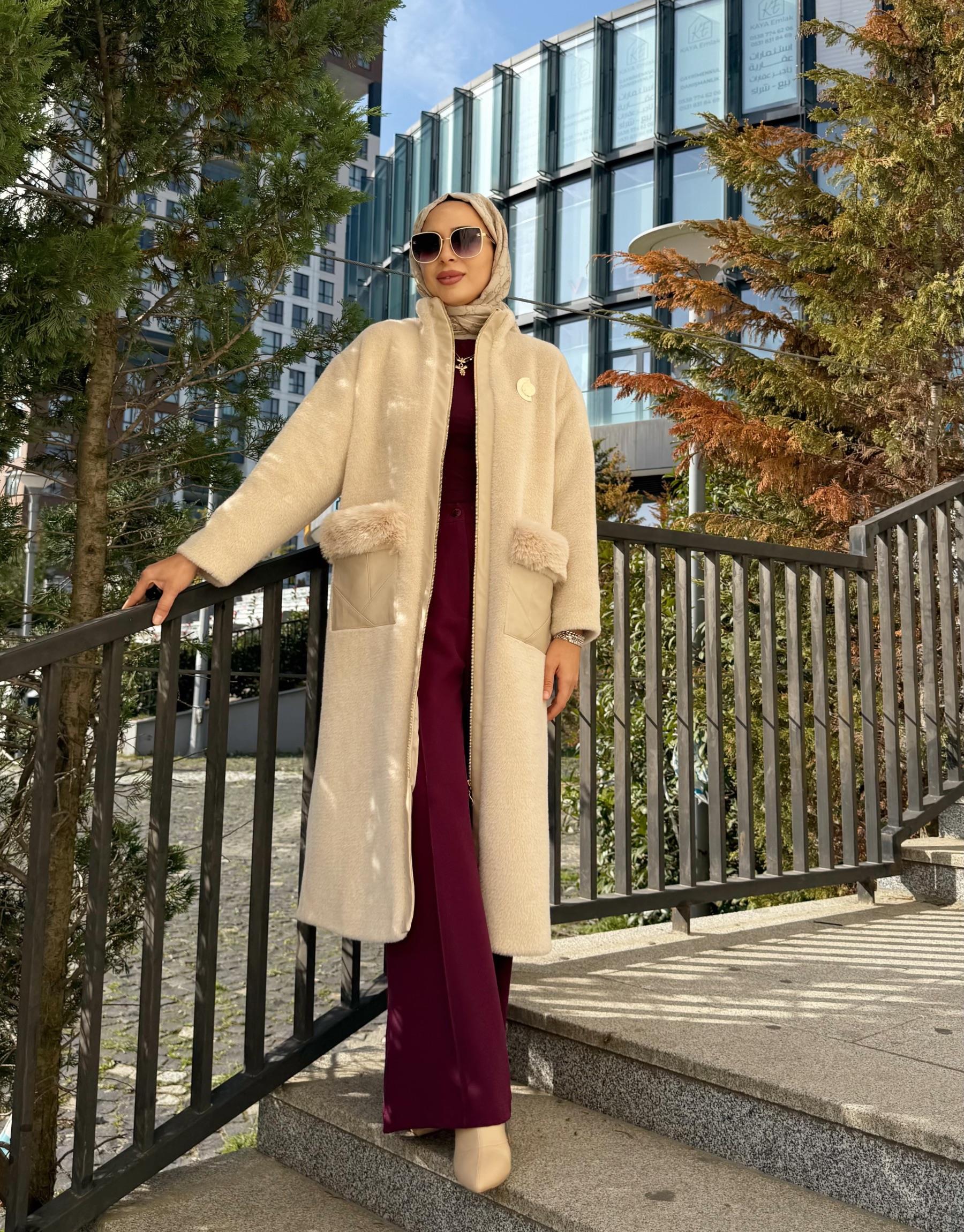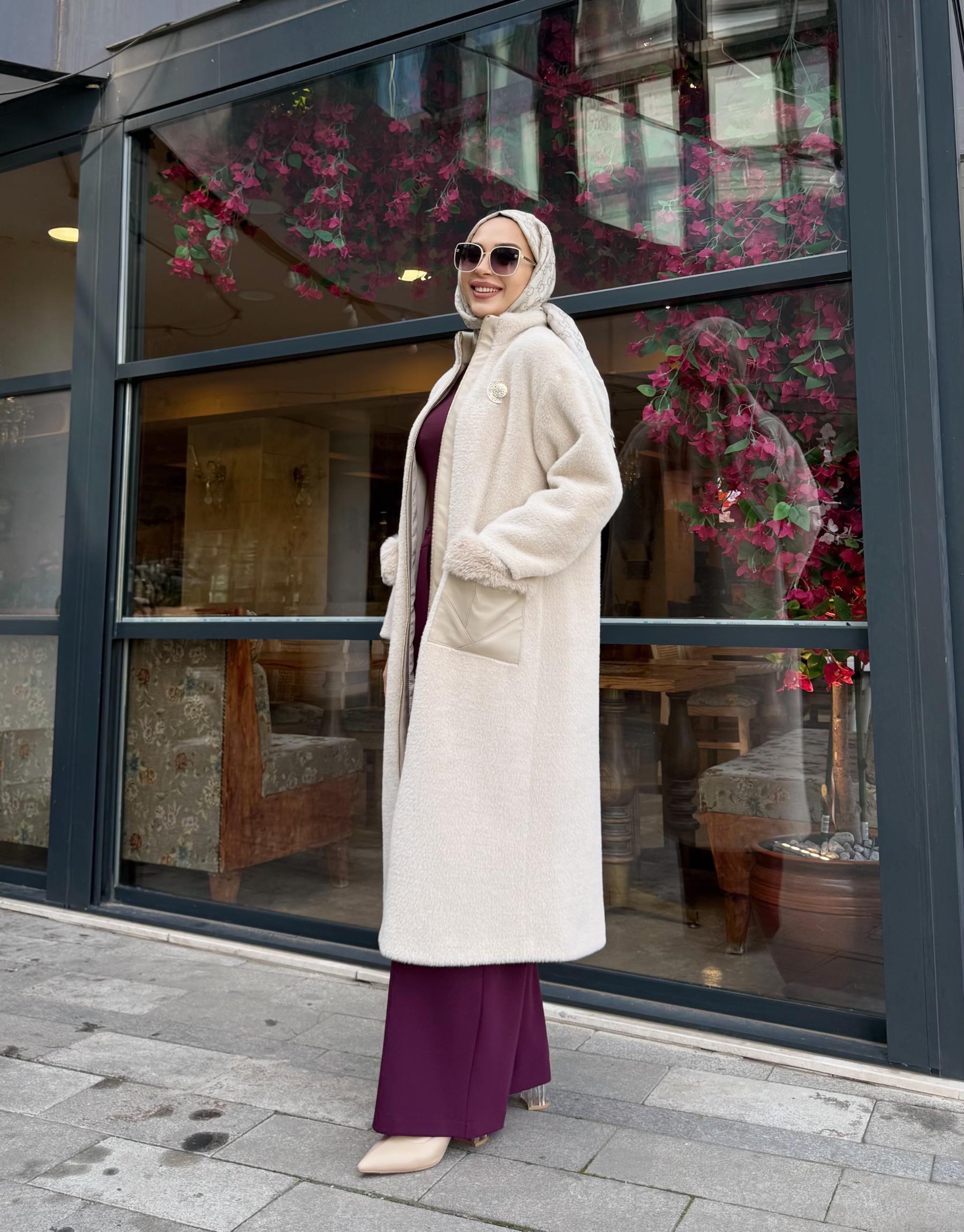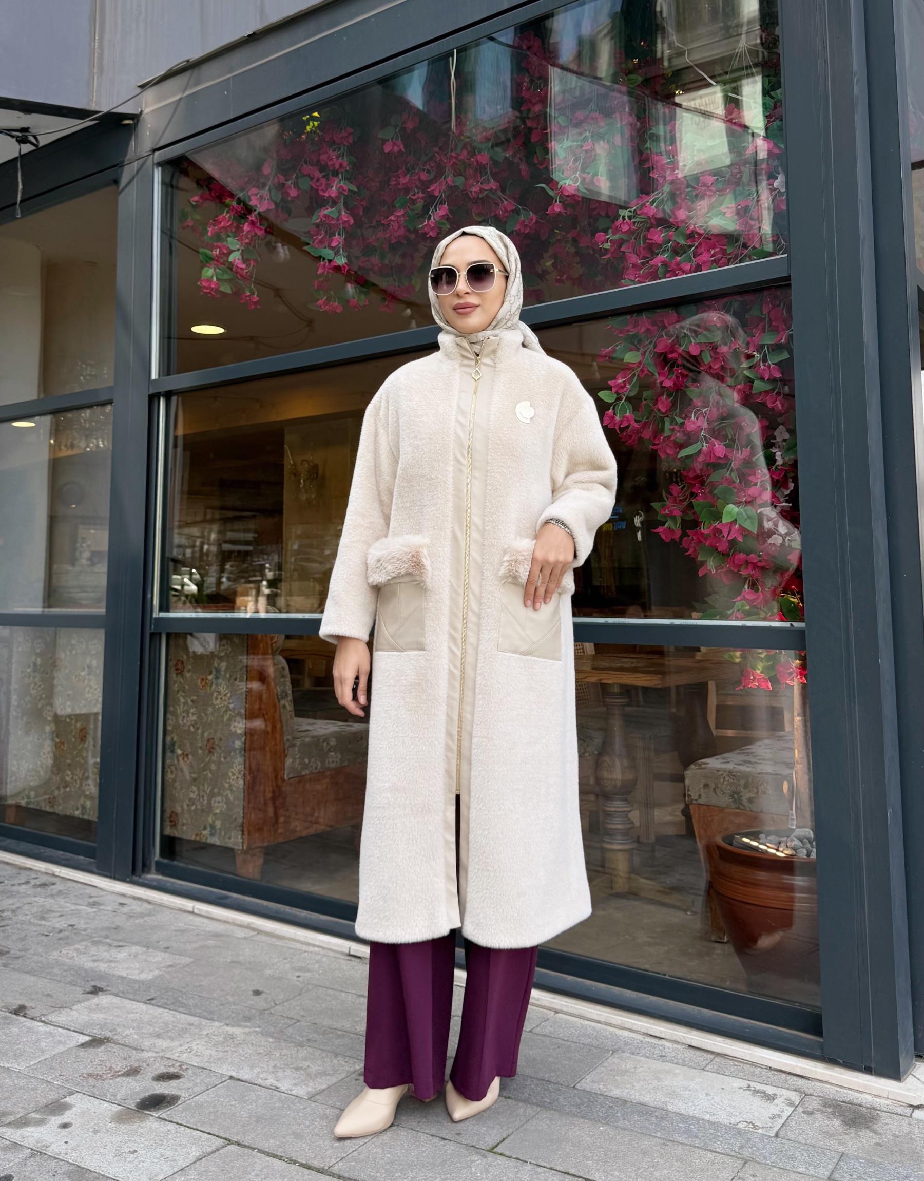 kadin DERİ GEÇİŞLİ ANGORA KABAN