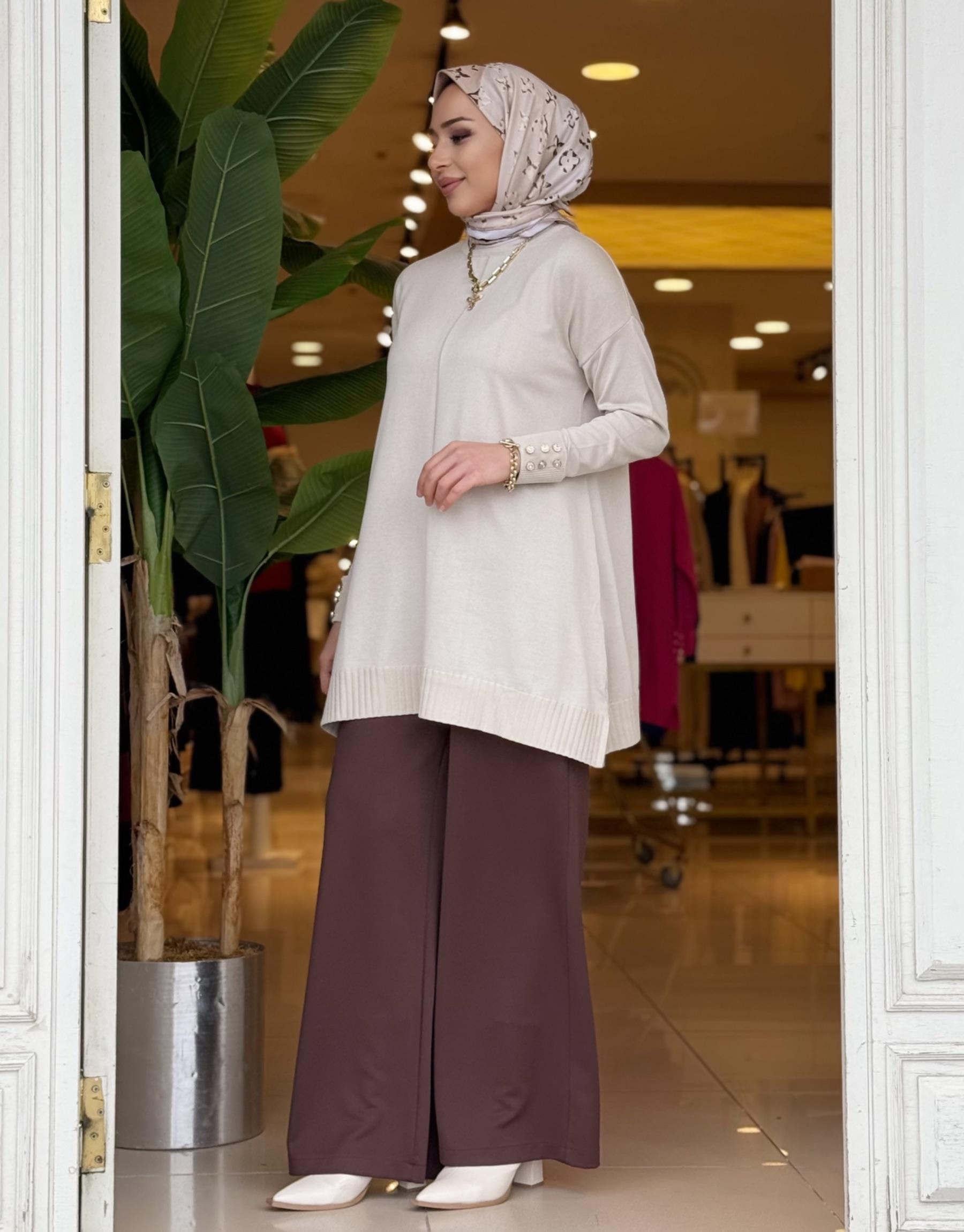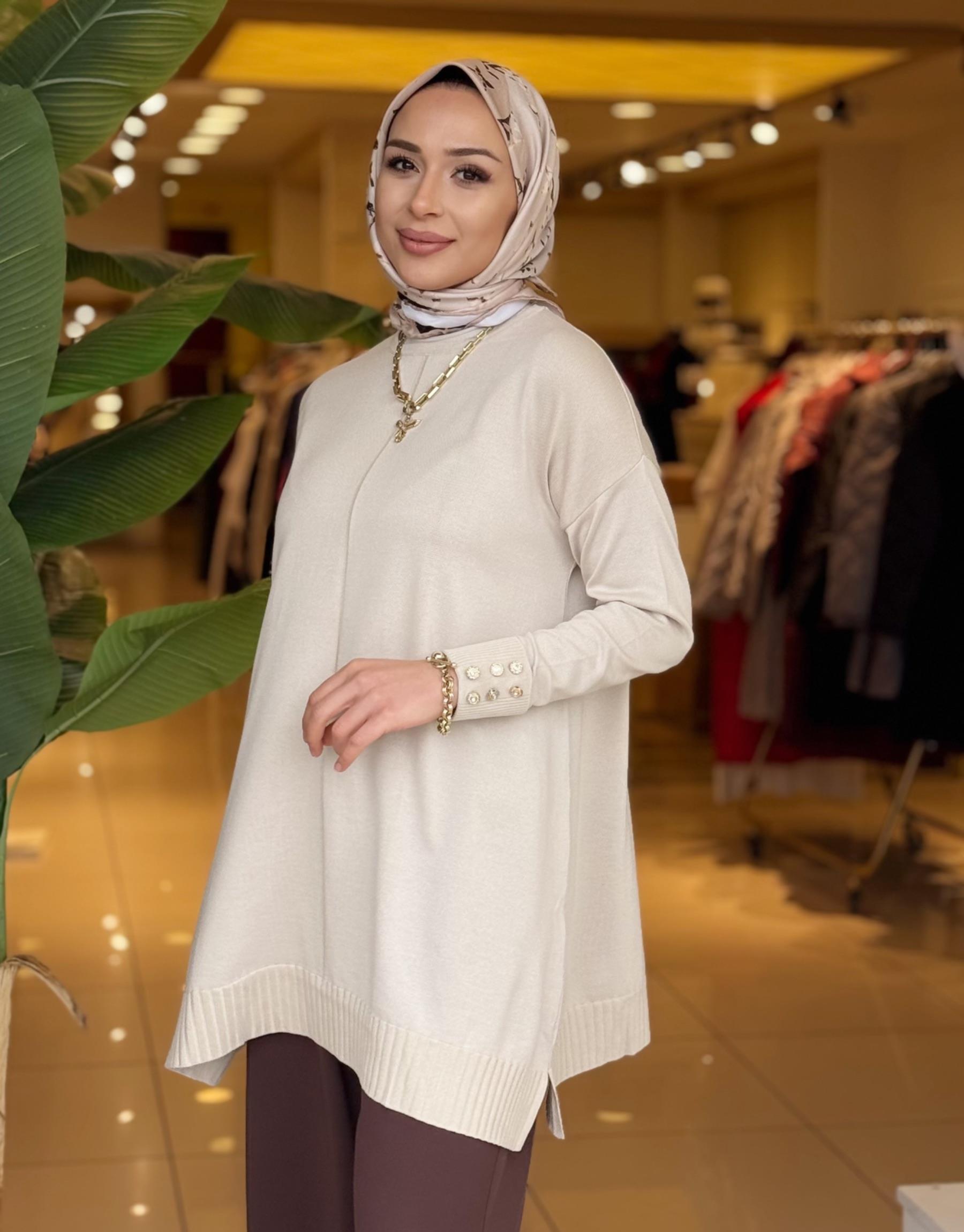 KOL DETAY TRİKO TUNİK BEJ
