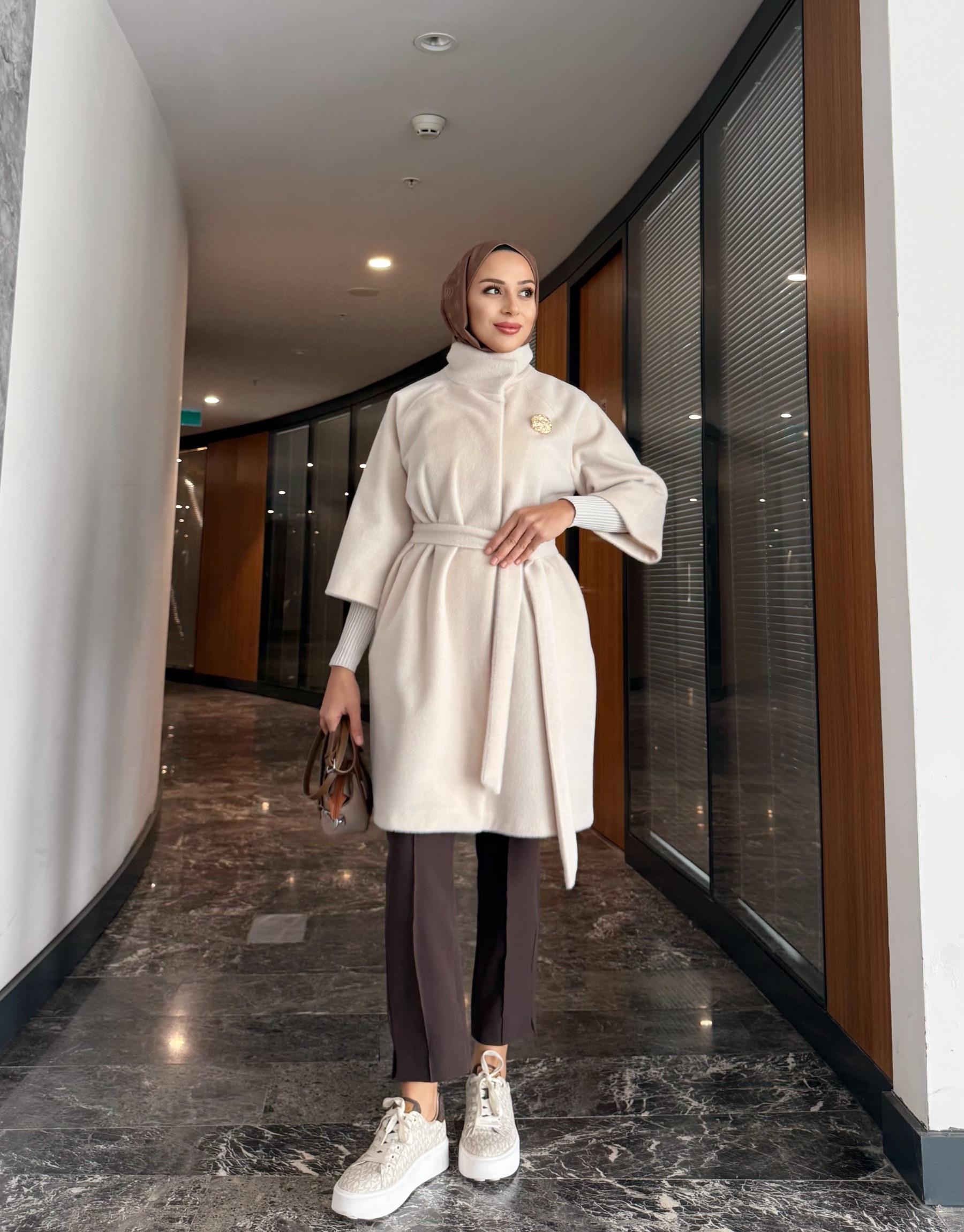 DÜĞMELİ KOL DETAY KABAN BEJ