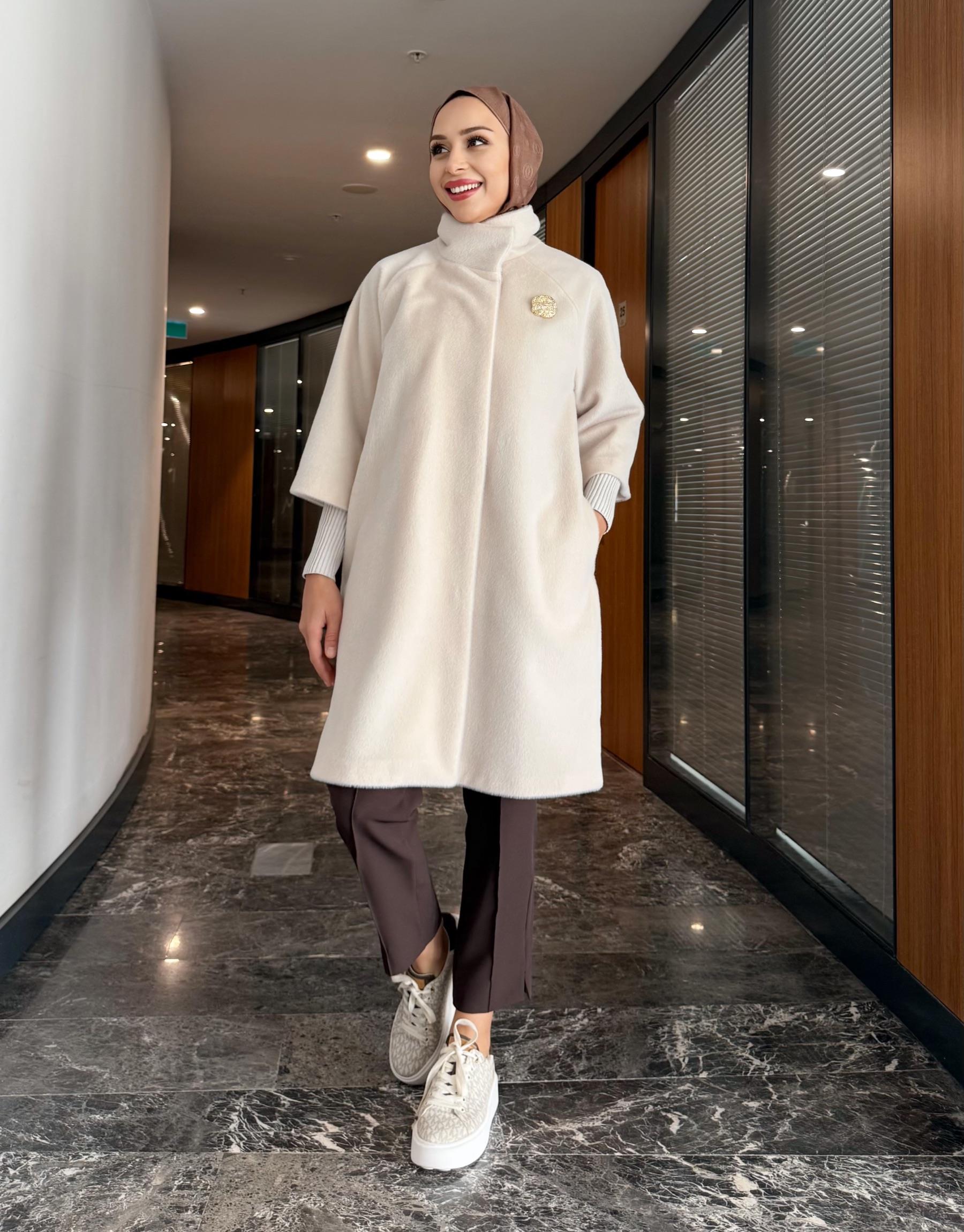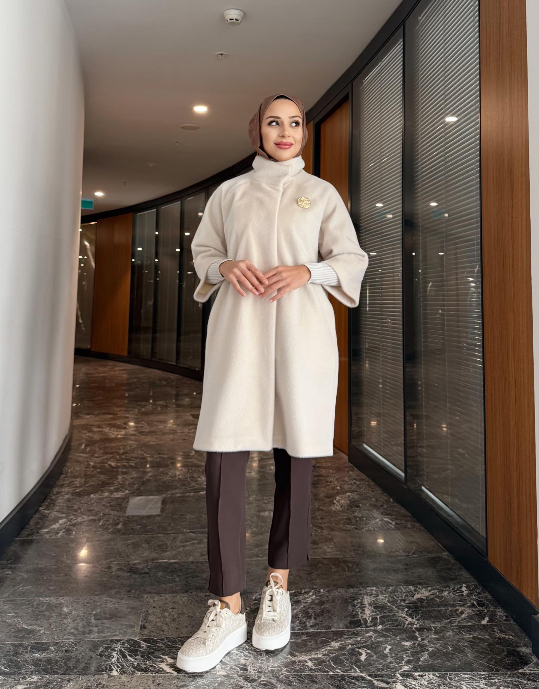 DÜĞMELİ KOL DETAY KABAN KAHVE