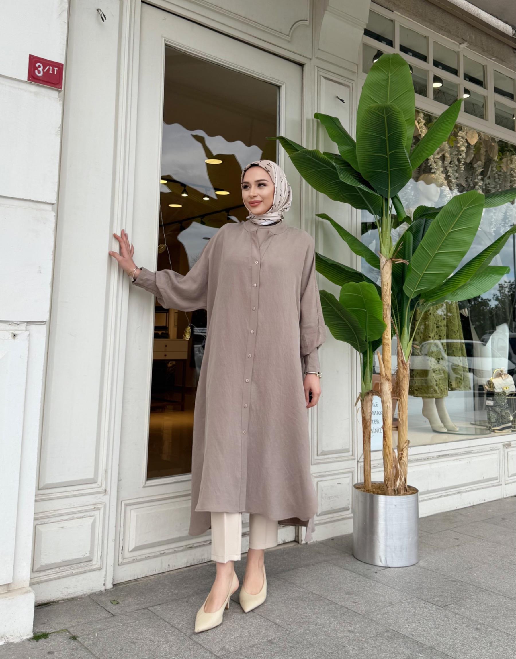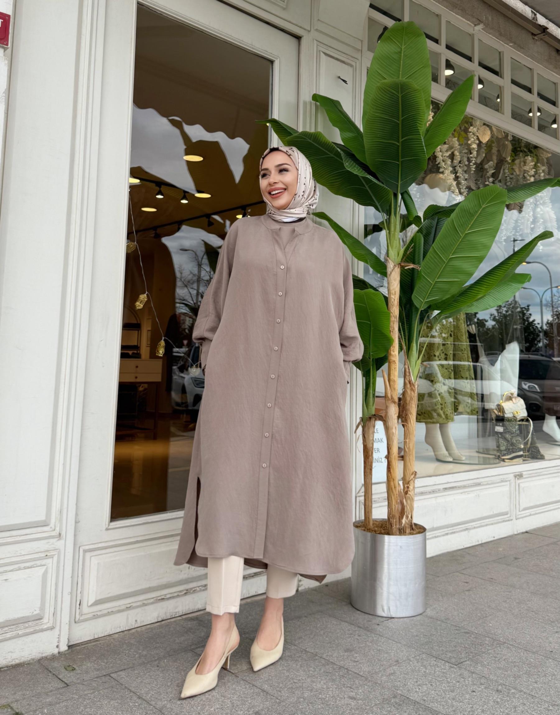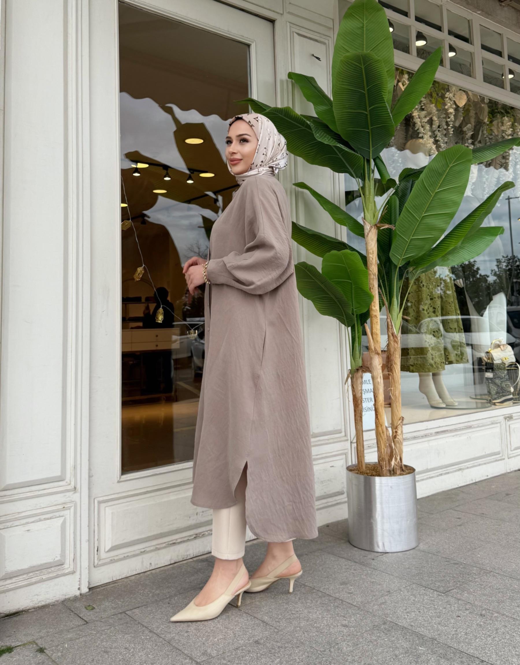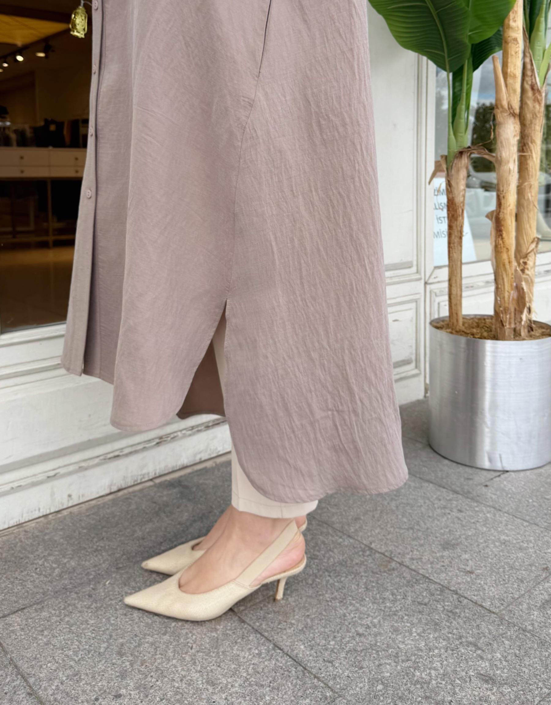 LUNARİA BASKI DETAY UZUN GÖMLEK VİZON