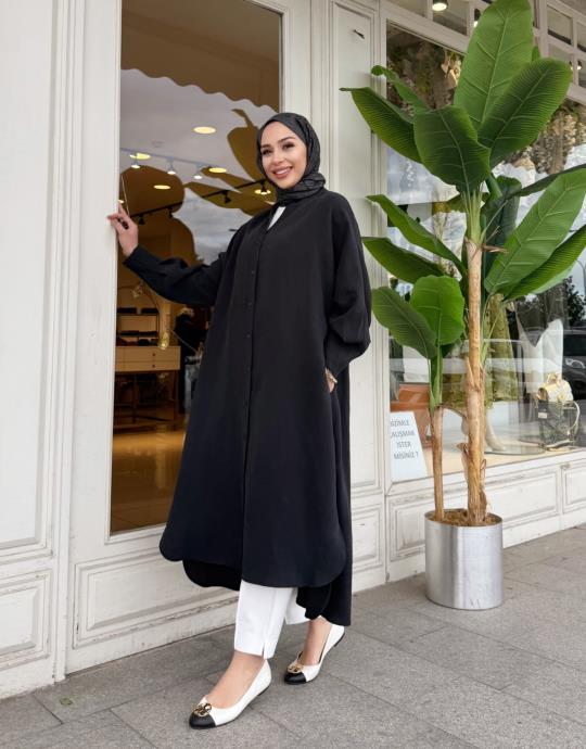 LUNARİA BASKI DETAY UZUN GÖMLEK SİYAH