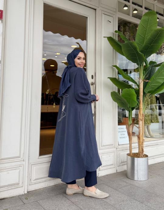 LUNARİA BASKI DETAY UZUN GÖMLEK İNDİGO
