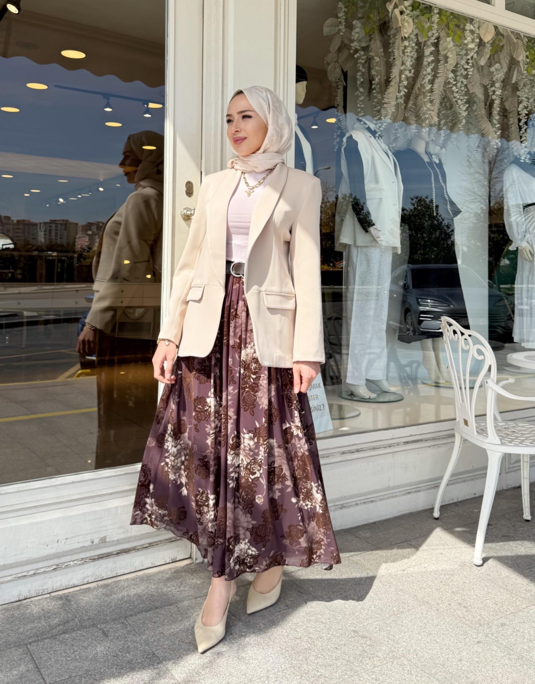 kadin ŞİFON DJİTAL DESEN ETEK