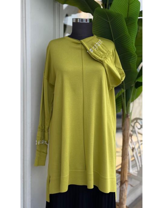 KOLU BONCUKLU BASİC TRİKO TUNİK YAĞ YEŞİLİ