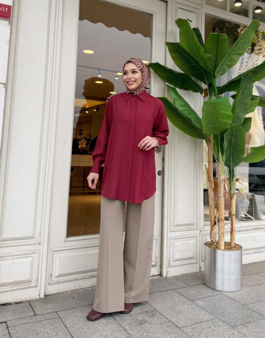 CREVA TENCEL GÖMLEK BORDO