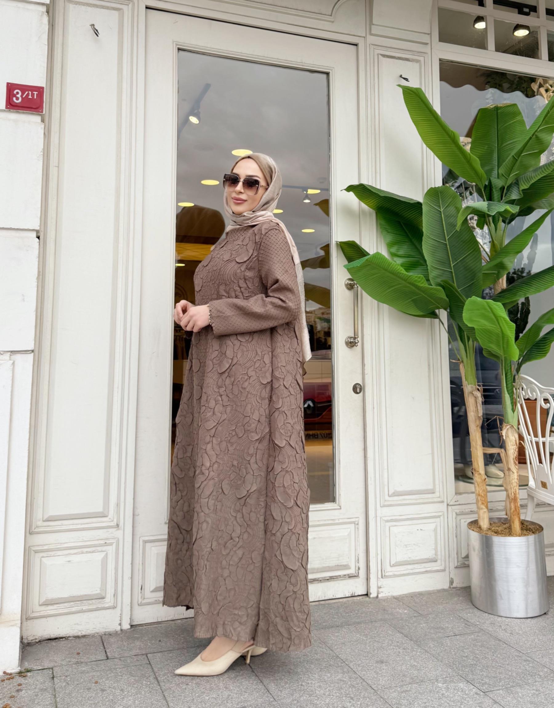 FERMUARLI NAMAZ ELBİSESİ BEJ