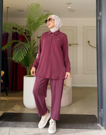 YAKASI FERMUAR DETAYLI TAKIM BORDO