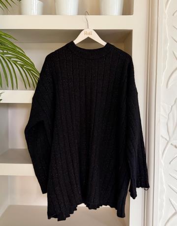 SİMLİ ÇİZGİLİ PELUŞ KAZAK SİYAH