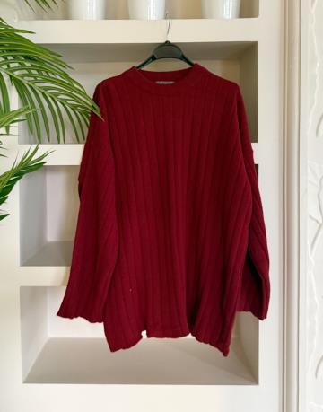 SİMLİ ÇİZGİLİ PELUŞ KAZAK BORDO