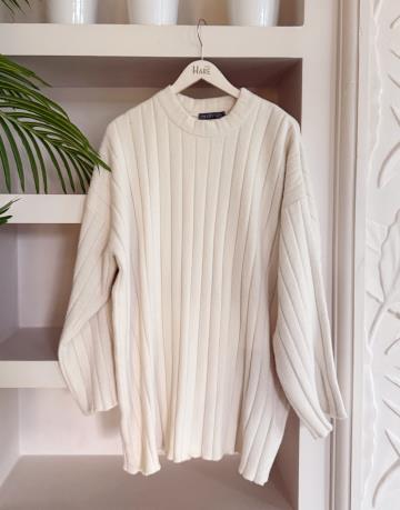 SİMLİ ÇİZGİLİ PELUŞ KAZAK EKRU