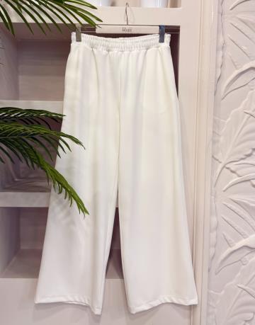 PUNEL BELİ LASTİKLİ BOL PAÇA PANTOLON BEYAZ