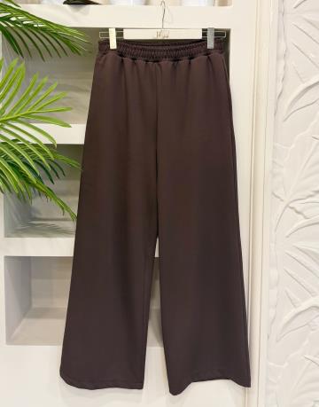 PUNEL BELİ LASTİKLİ BOL PAÇA PANTOLON KAHVE
