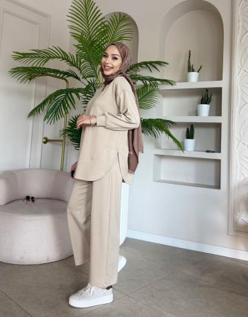 YIRTMAÇ DETAY BOL PAÇA TAKIM BEJ