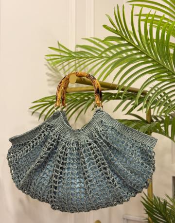 AHŞAP SAPLI HASIR EL ÖRGÜ ÇANTA YEŞİL