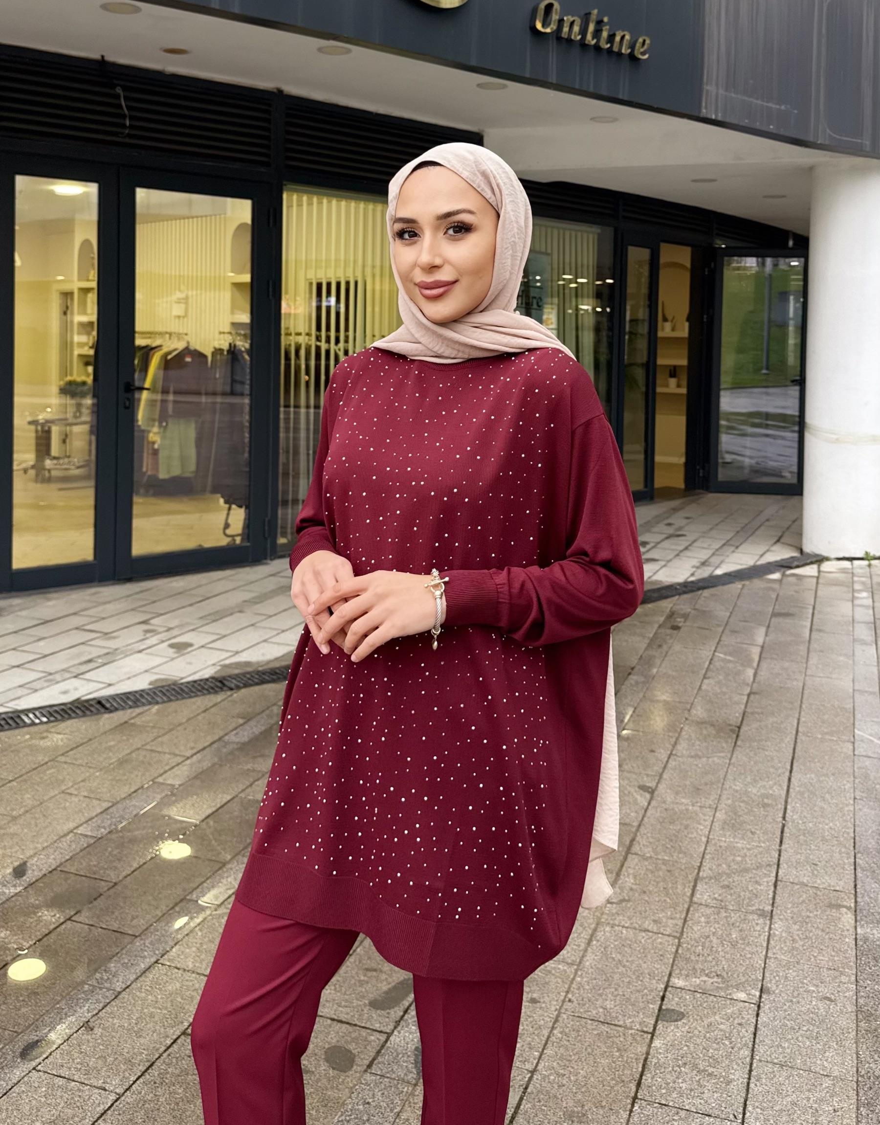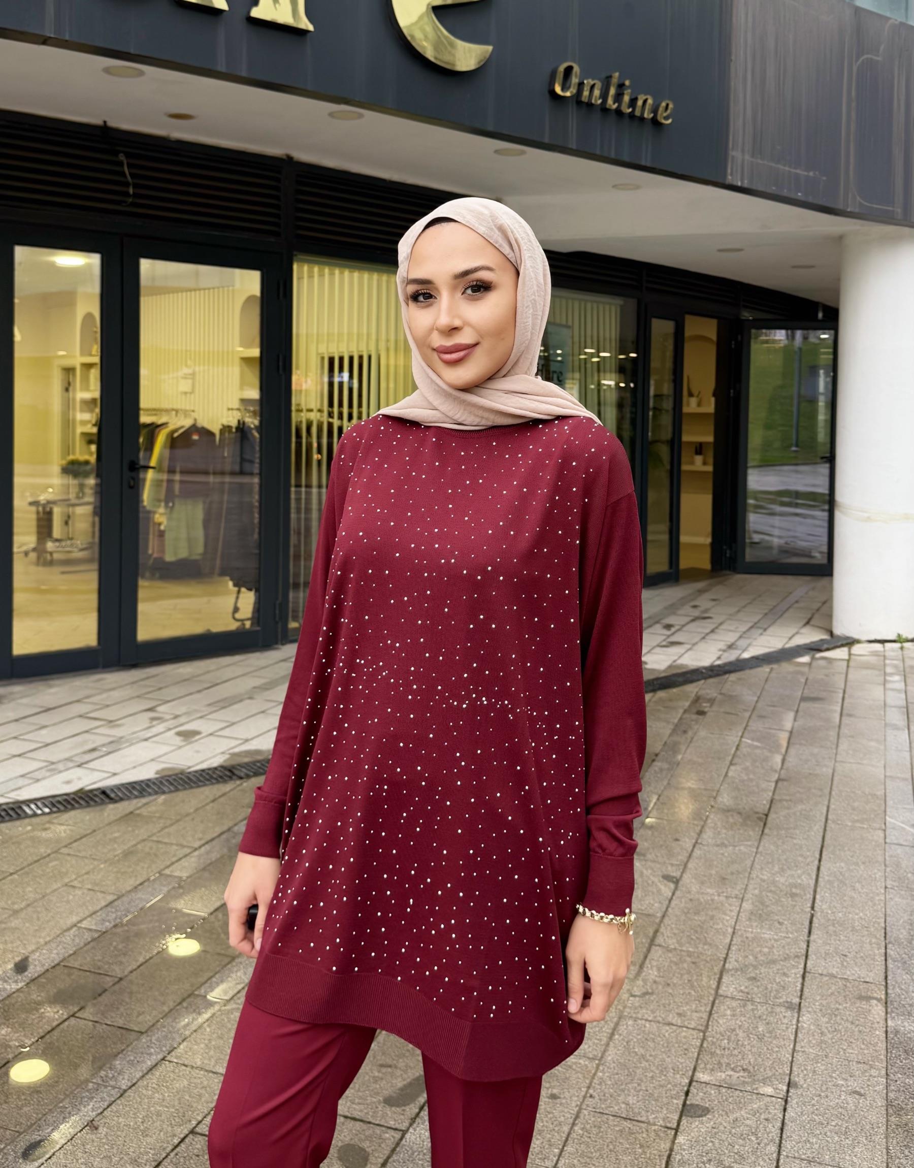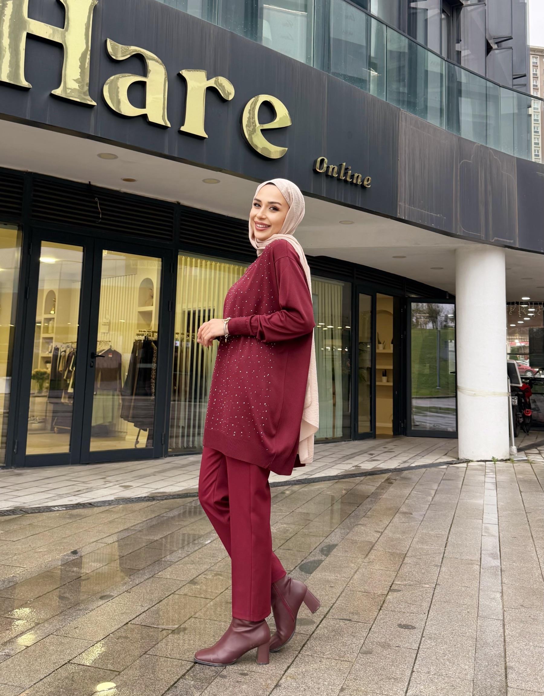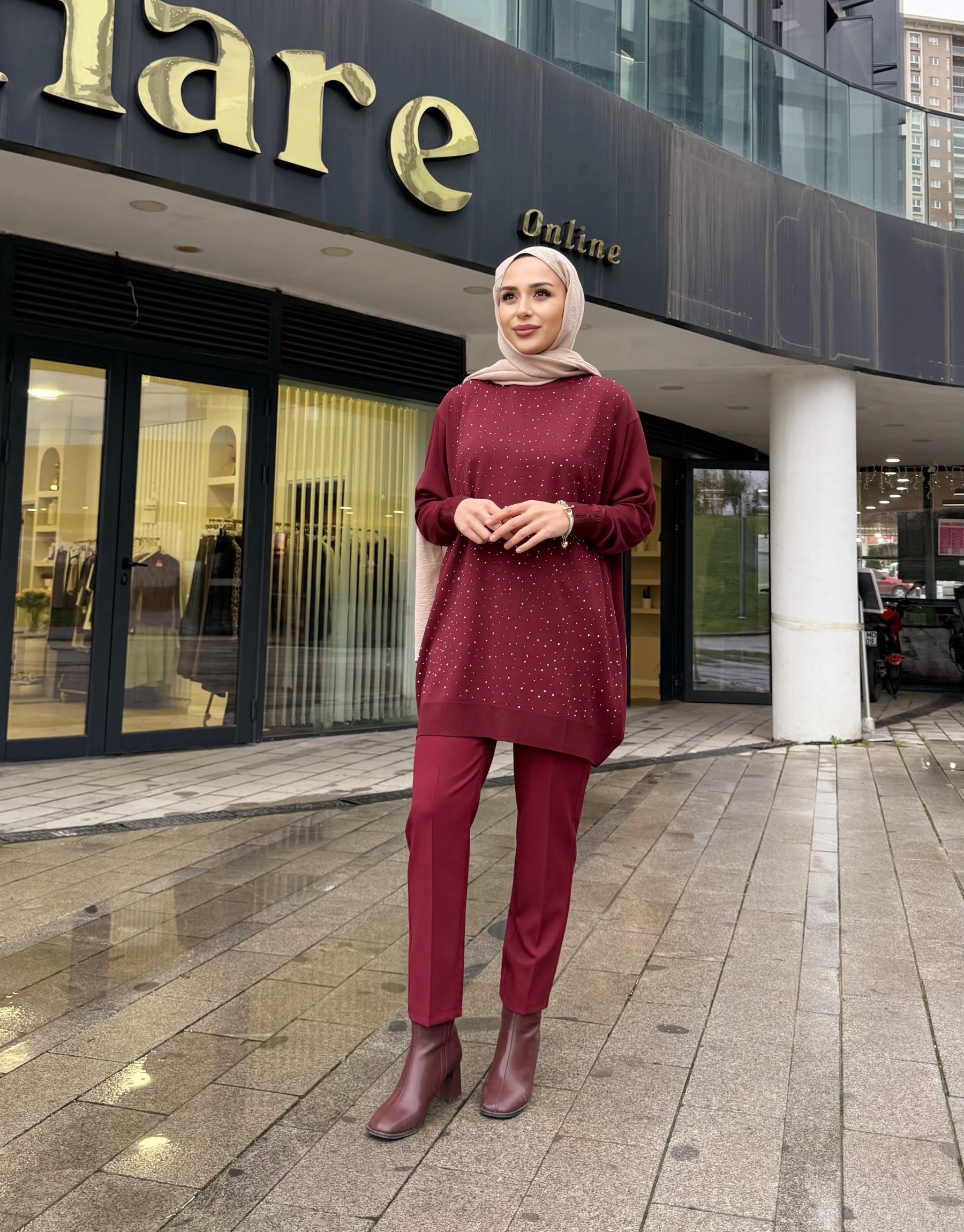 SERPME TAŞLI KAZAK BORDO