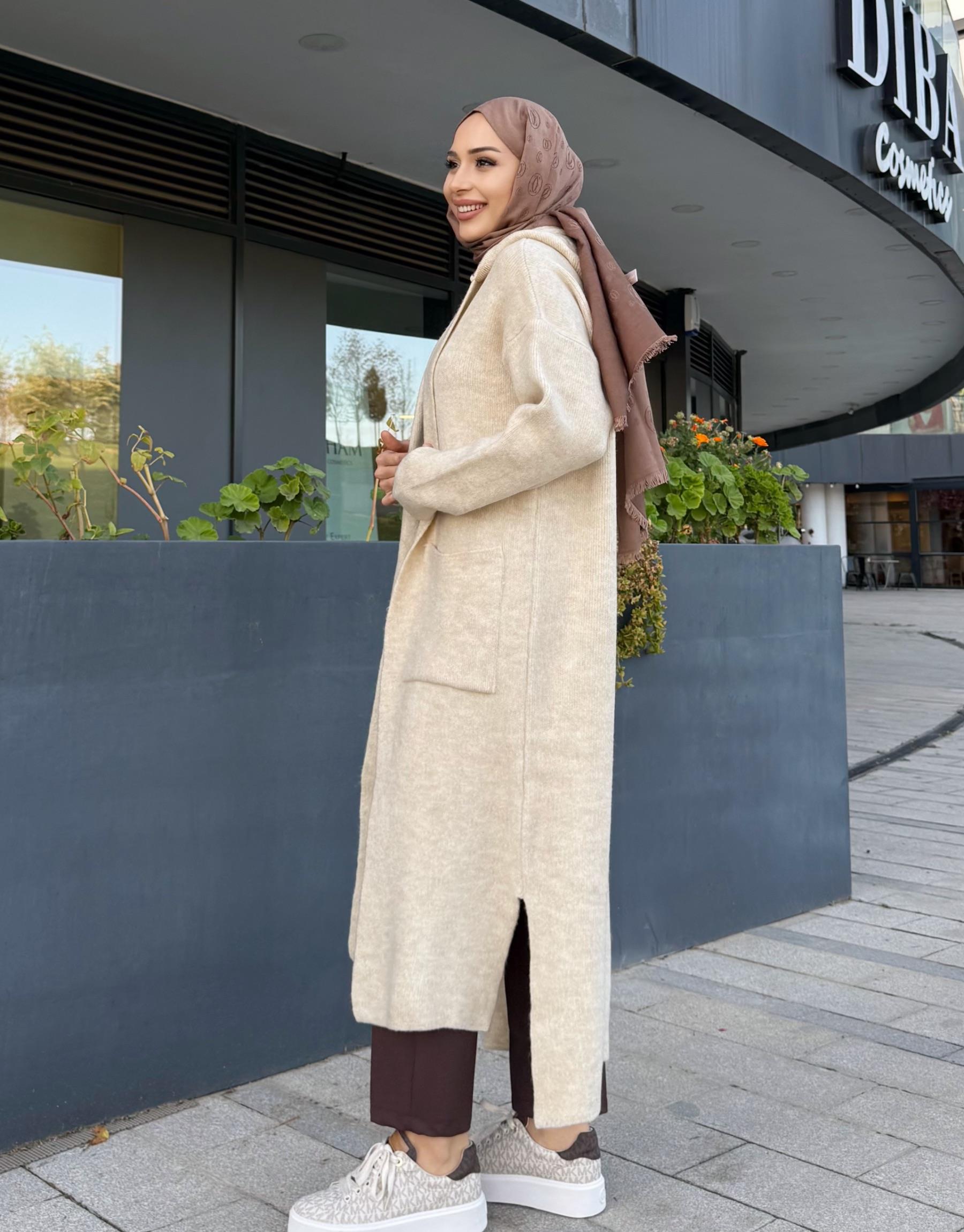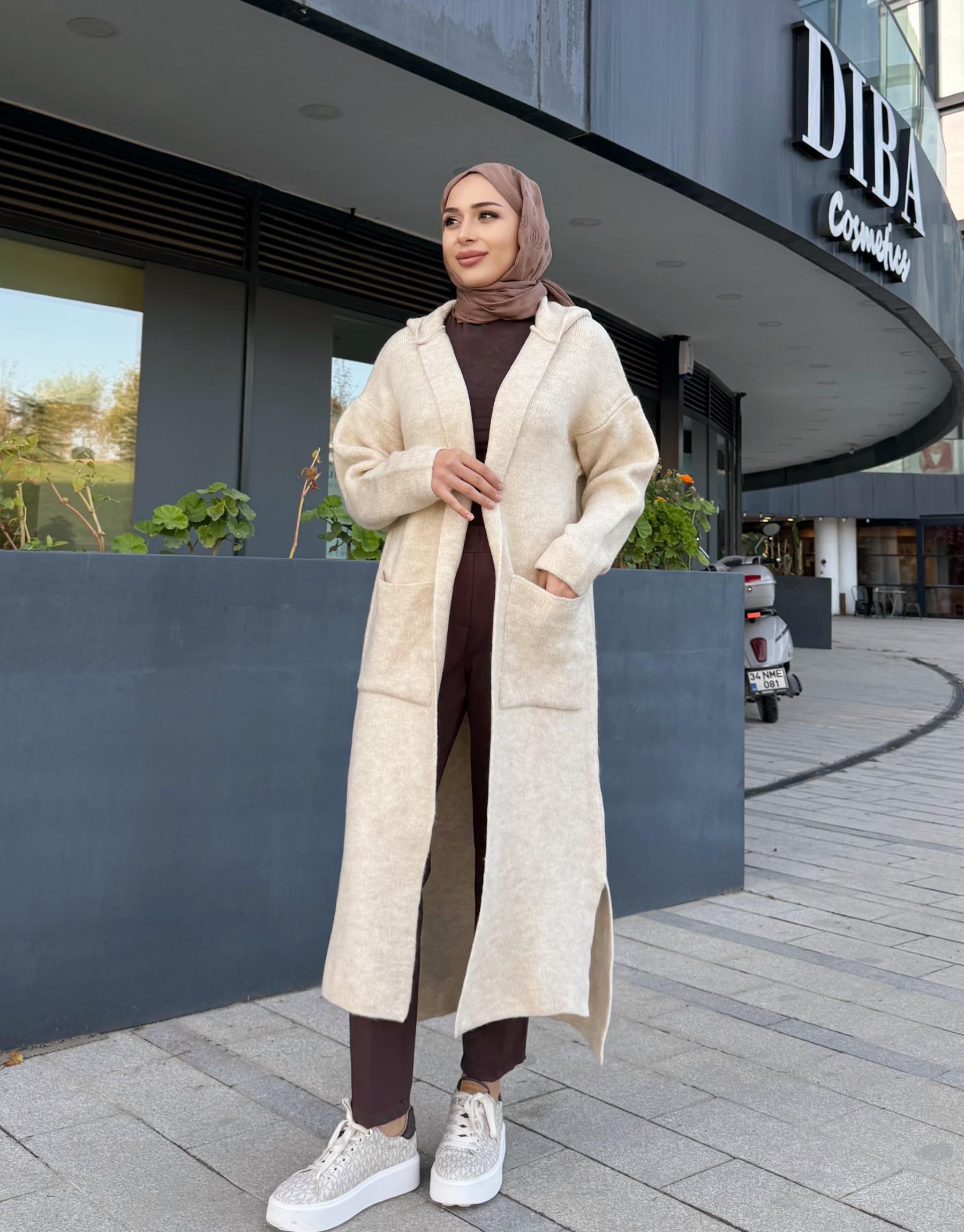 KAPÜŞONLU ÇITÇITLI HIRKA EKRU