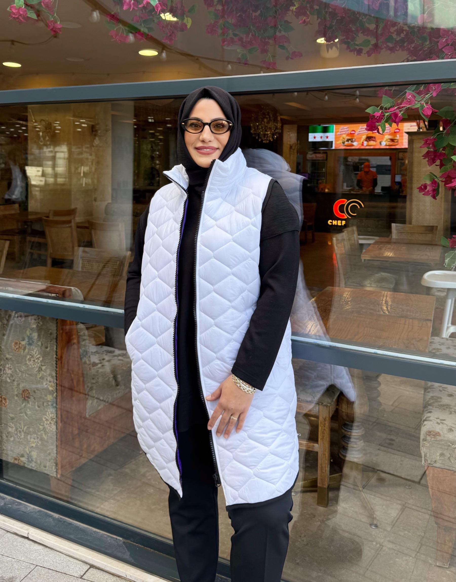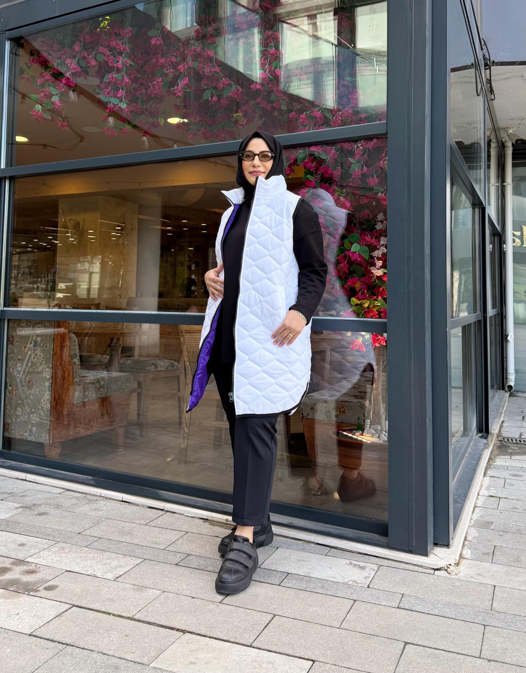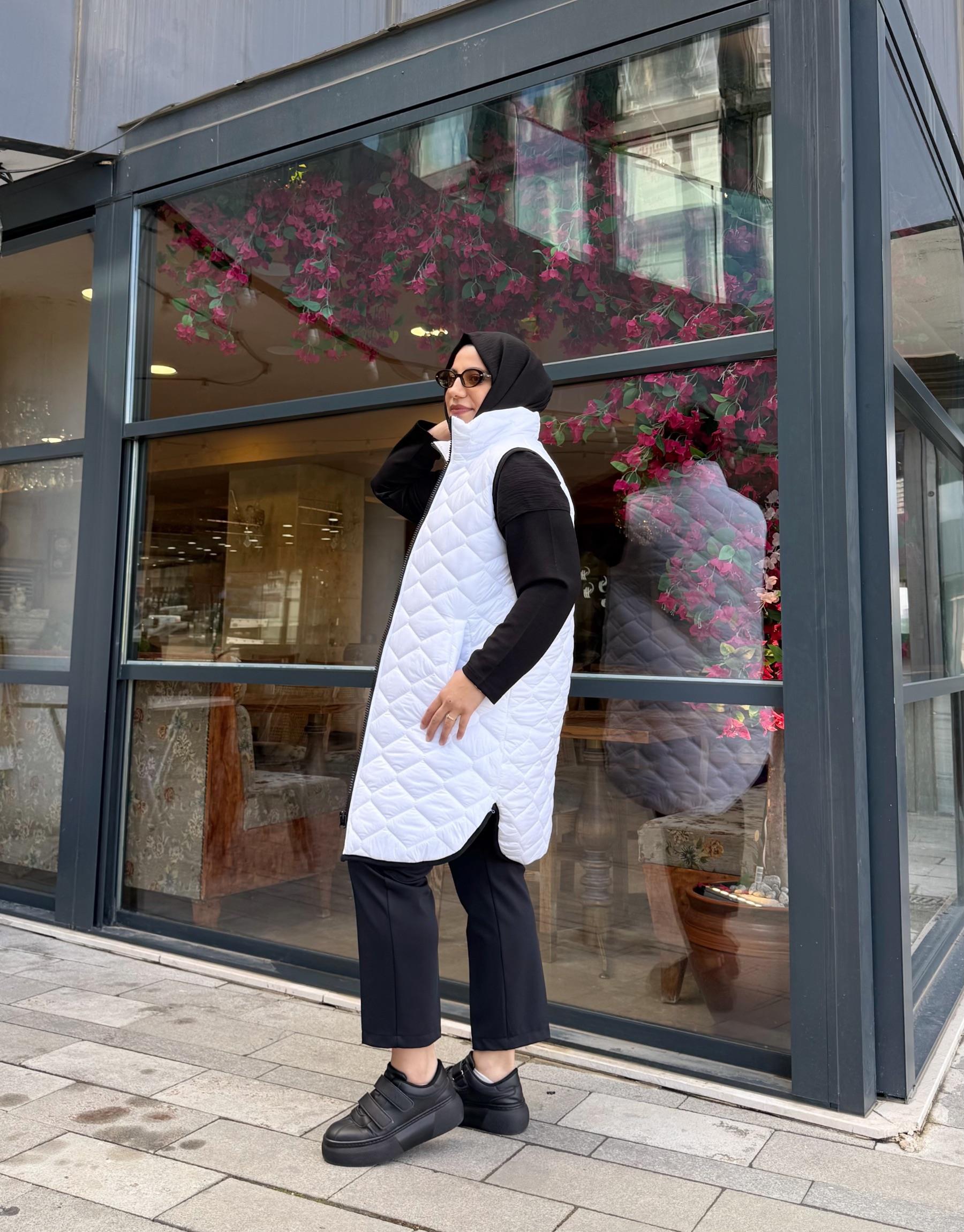 ASİMETRİK KAPİTONE ŞİŞME YELEK BEYAZ