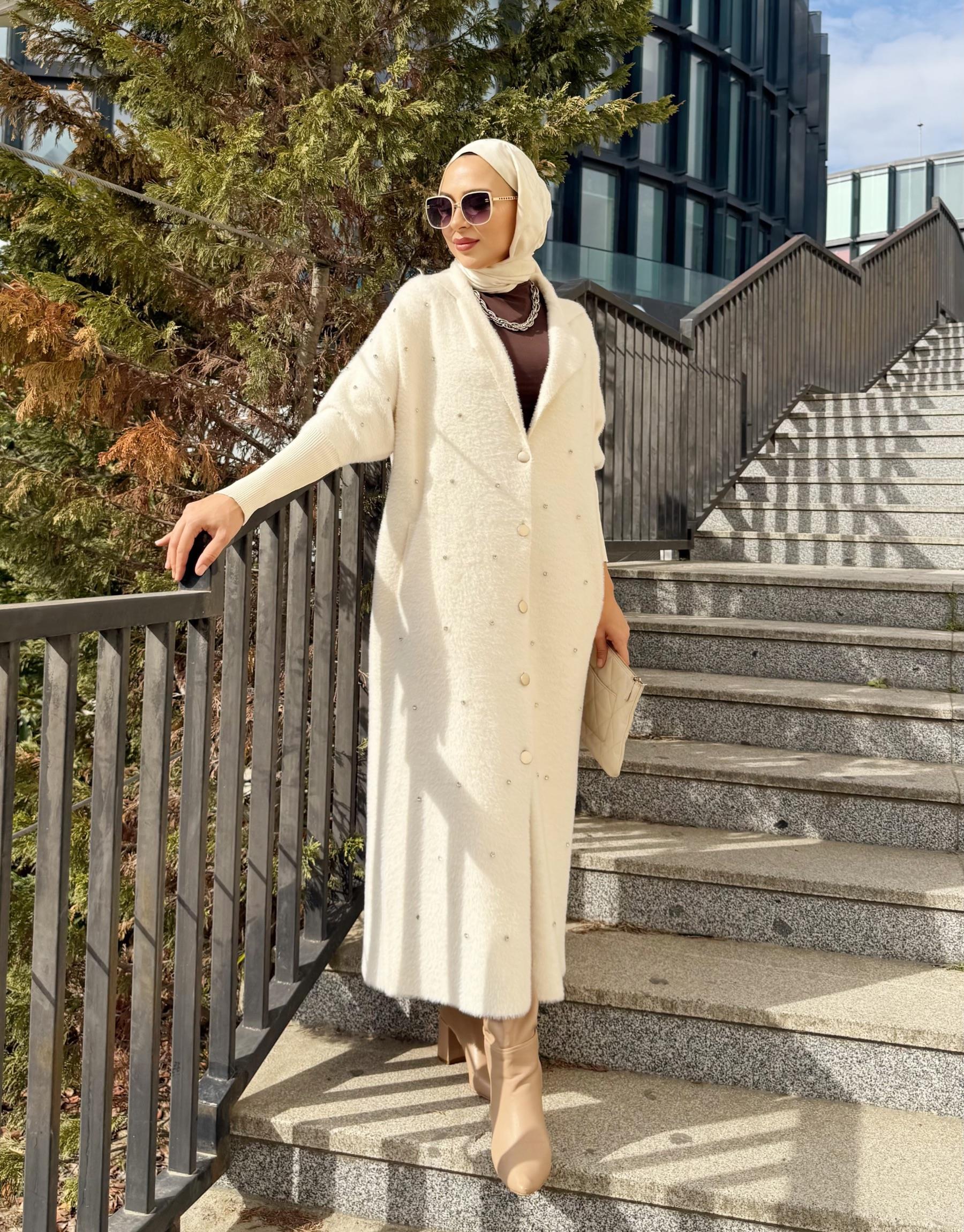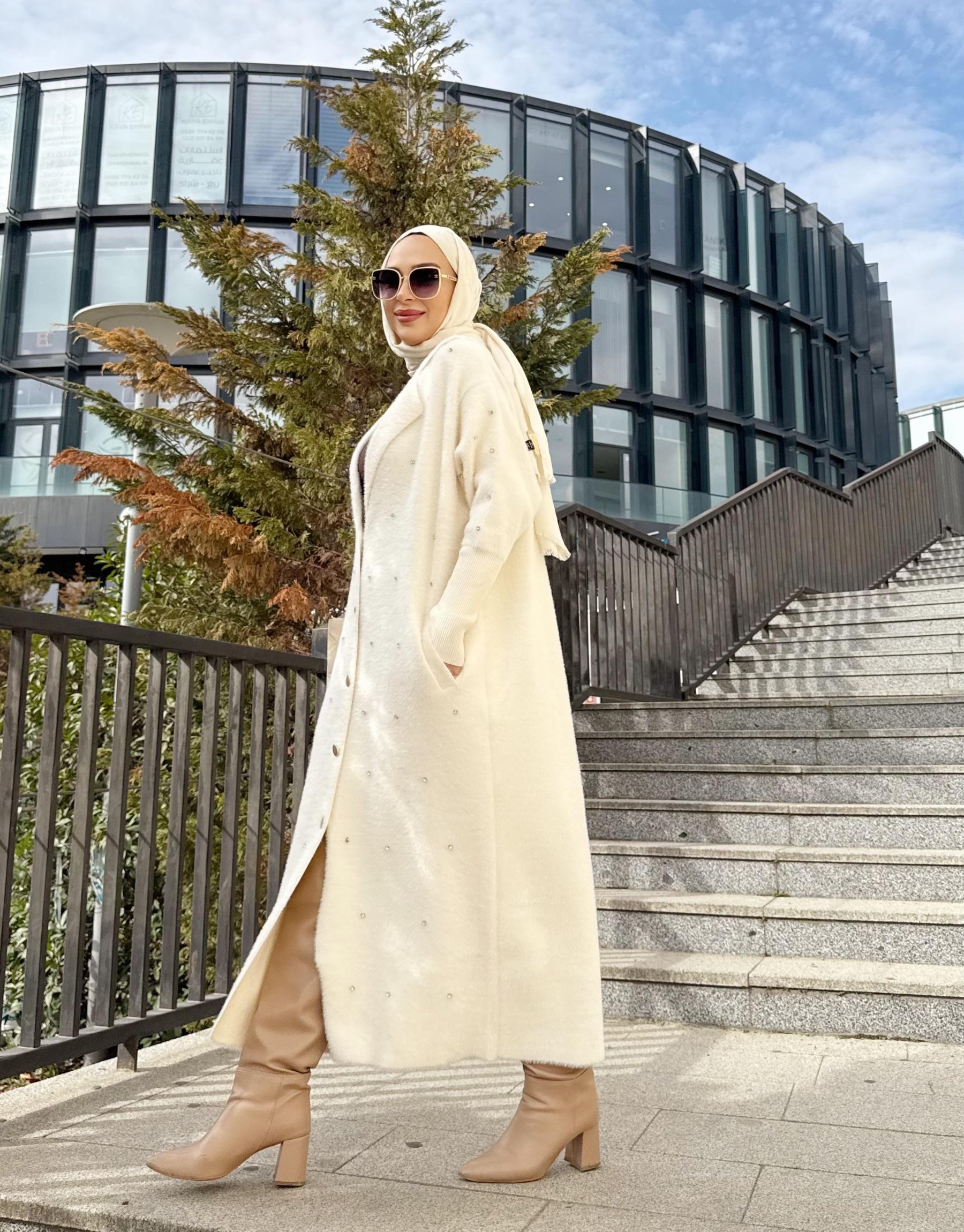 KOLU TRİKO SERPME TAŞLI ANGORA HIRKA EKRU