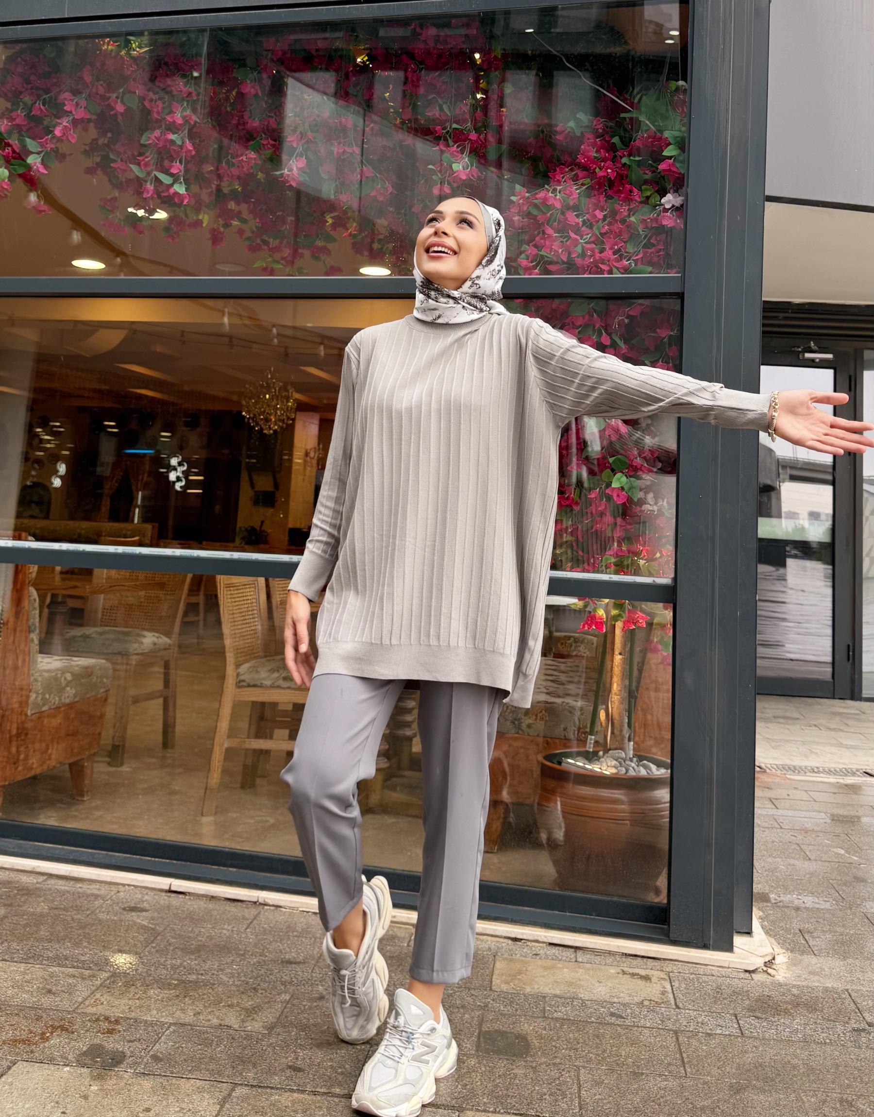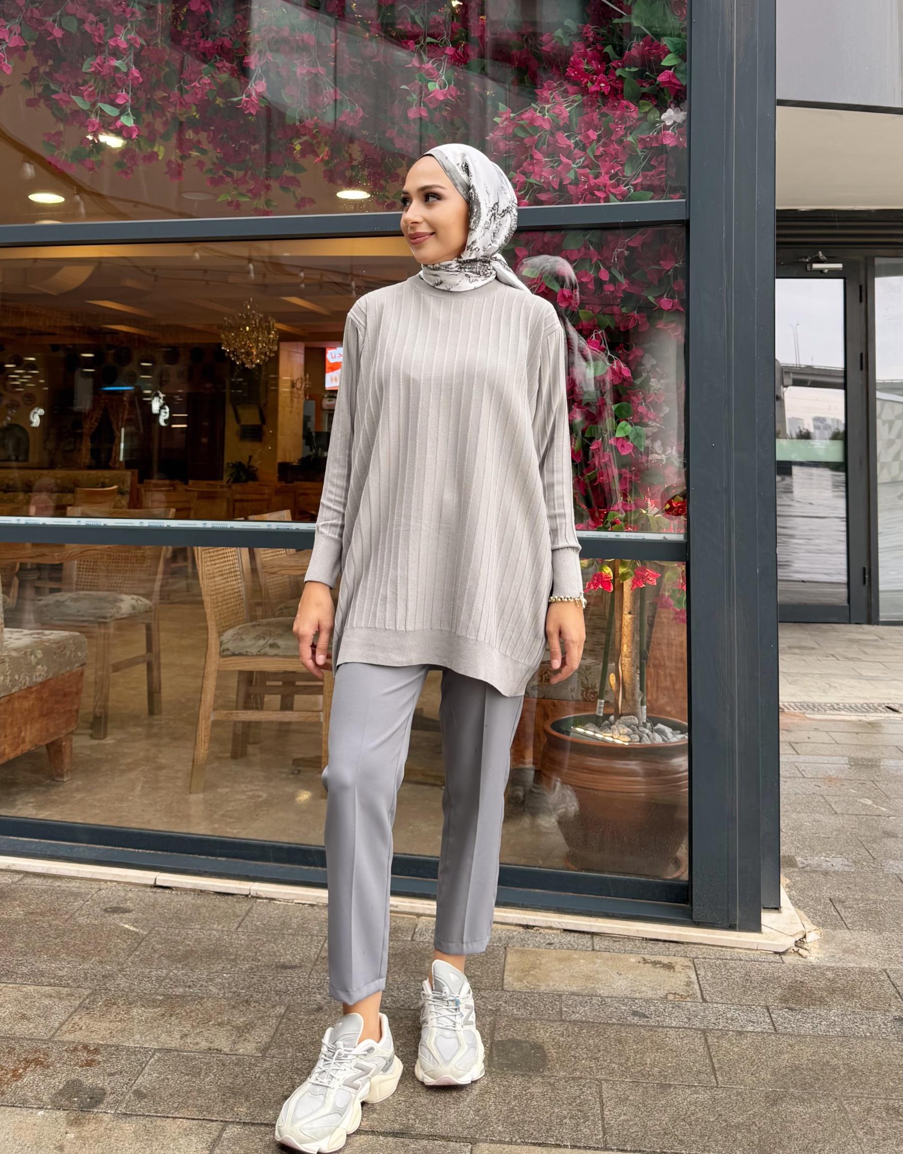 NESA ÖNÜ OVAL BASİC KAZAK GRİ
