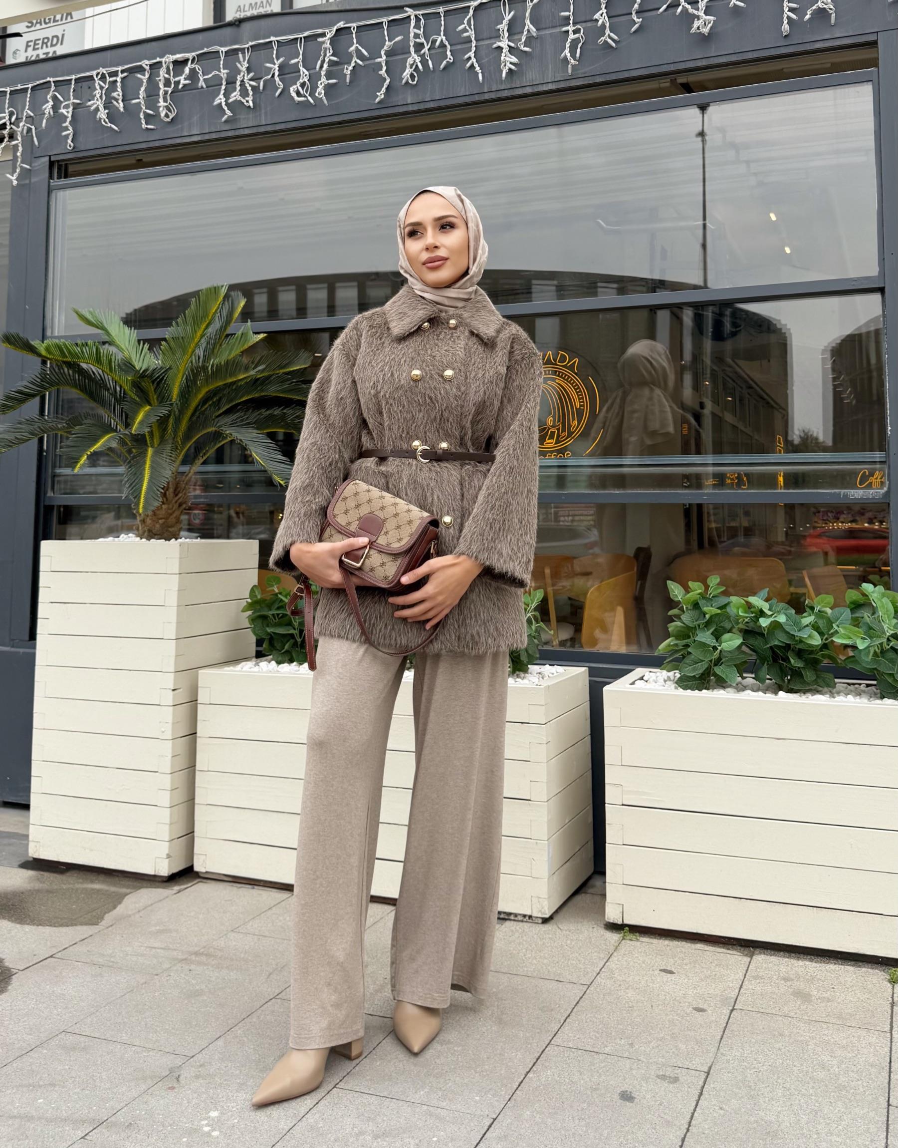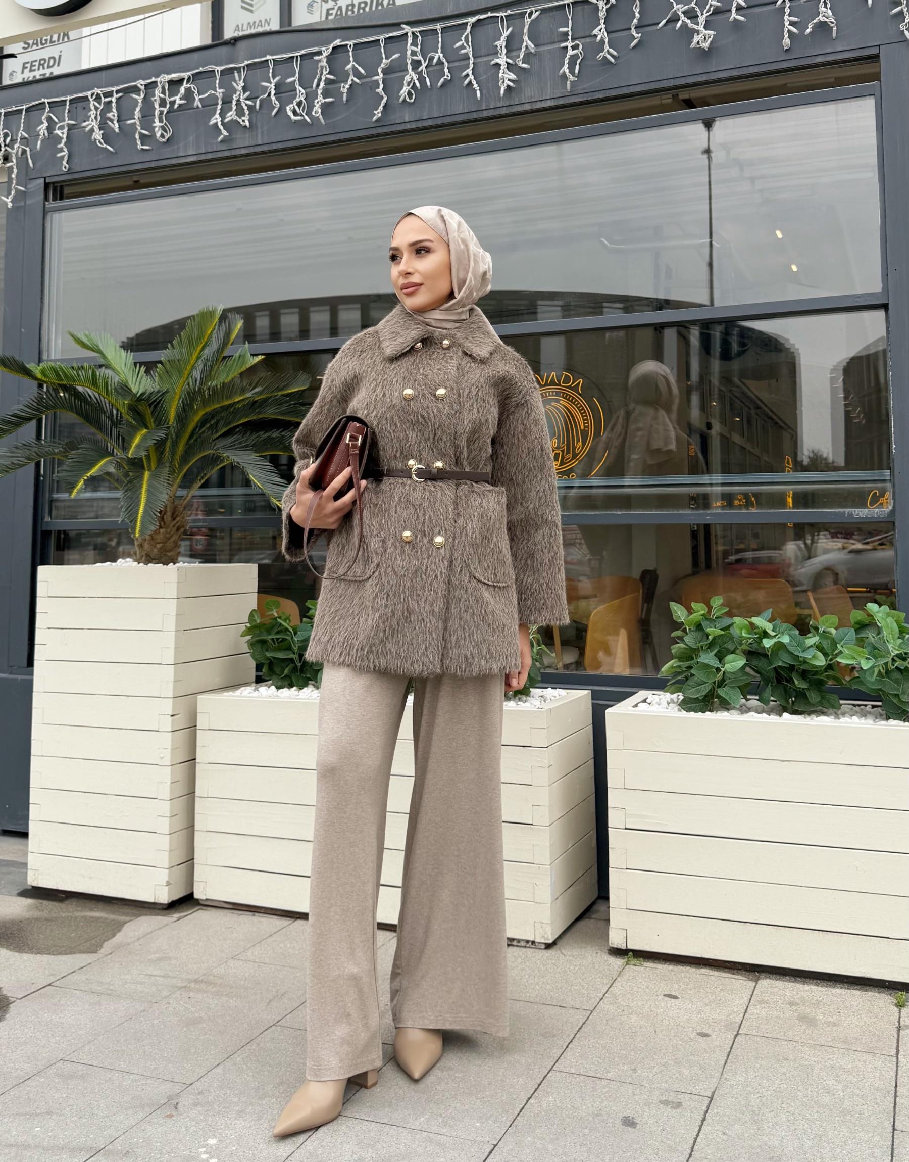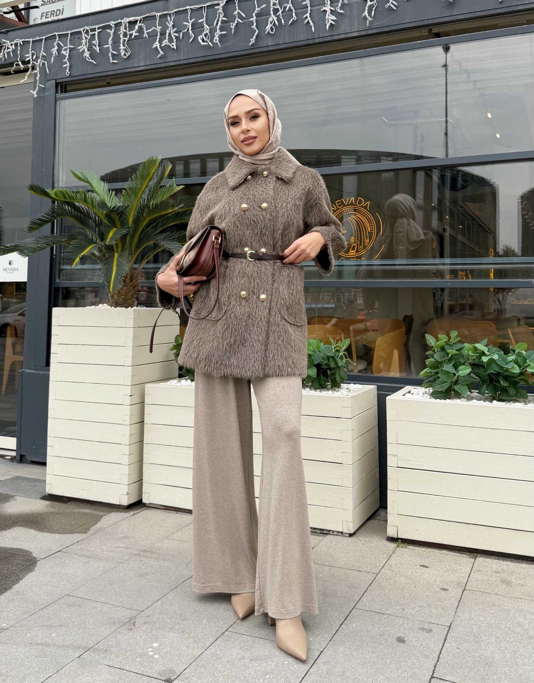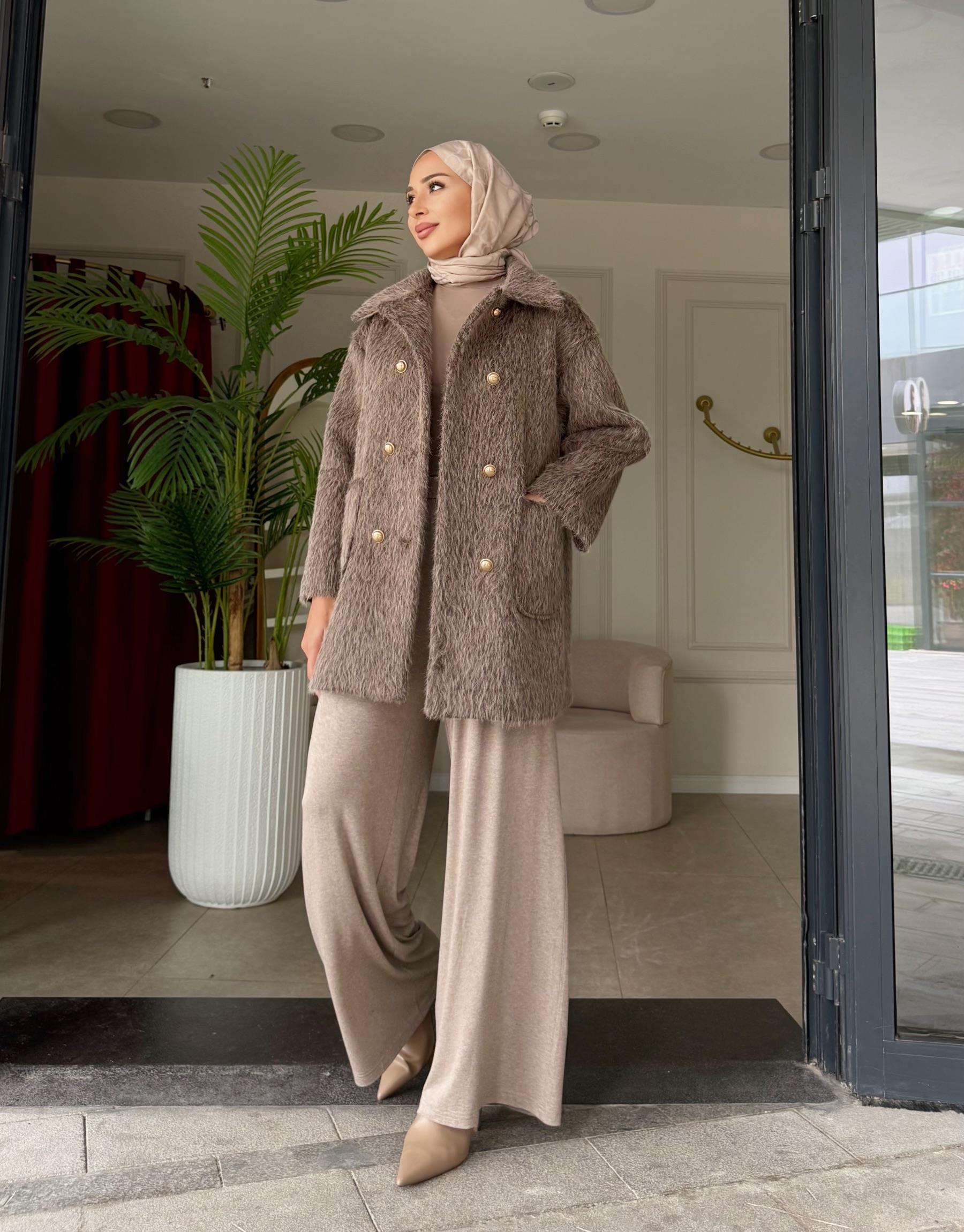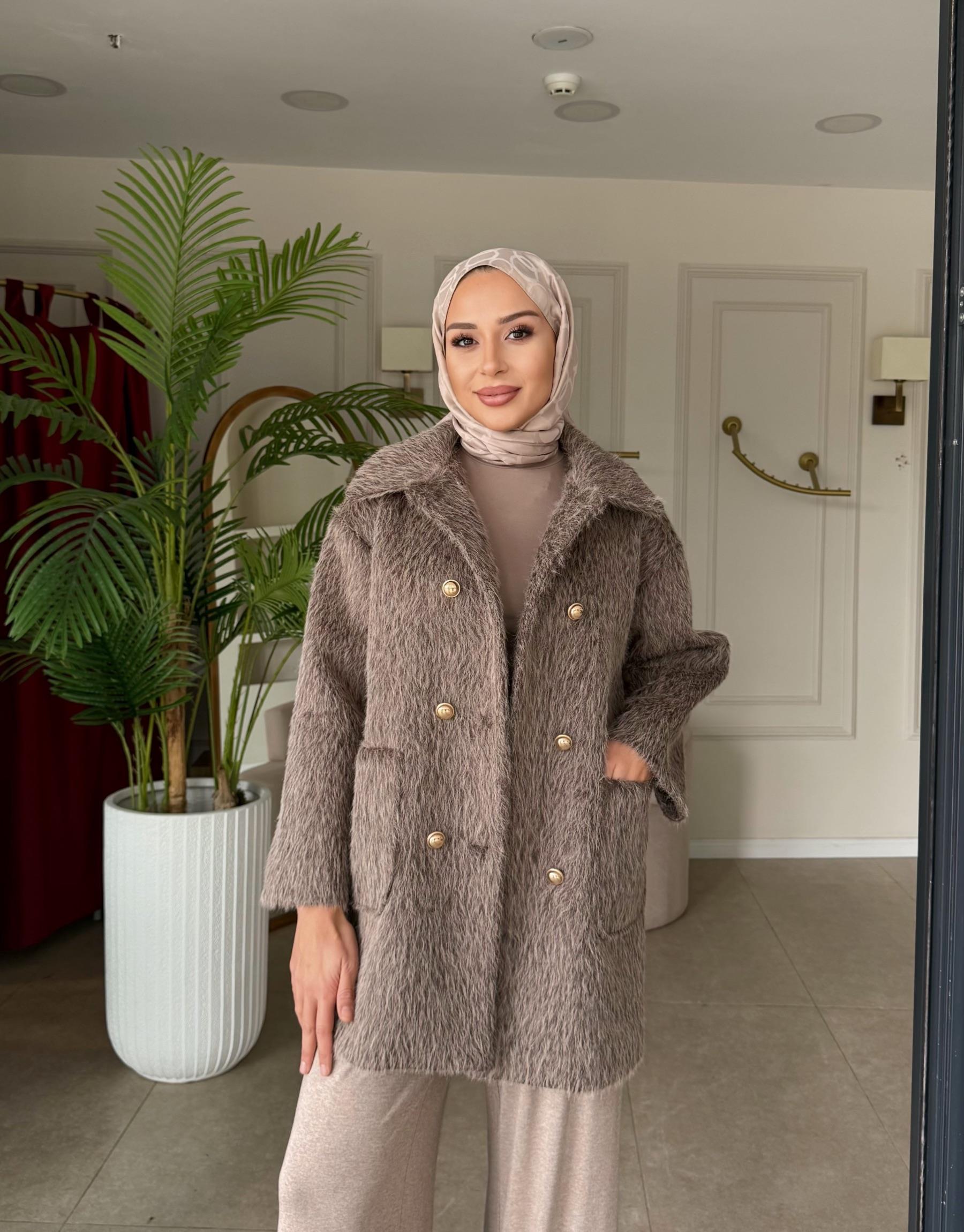 GOLD DÜĞME DETAY KÜRK CEKET KAHVE