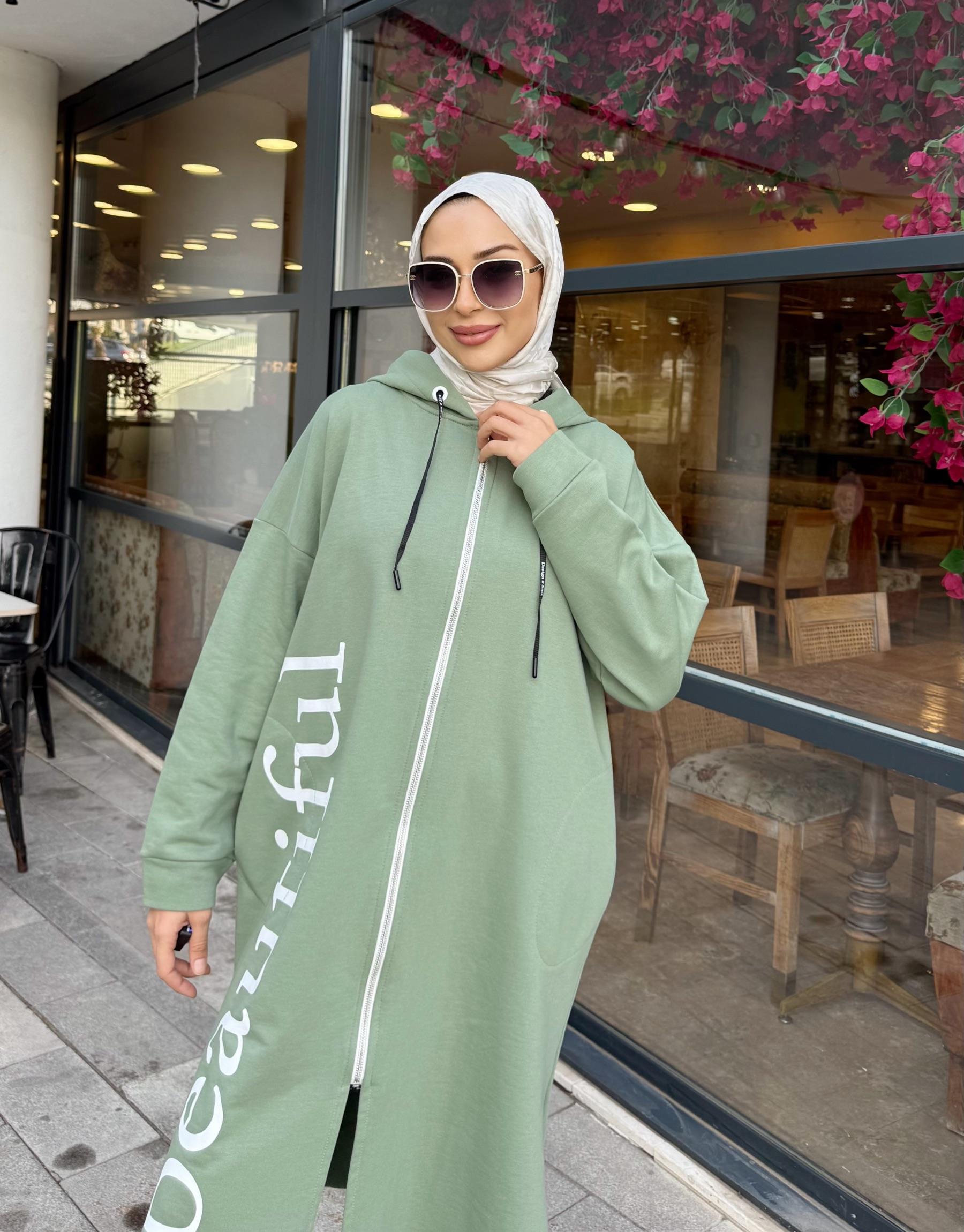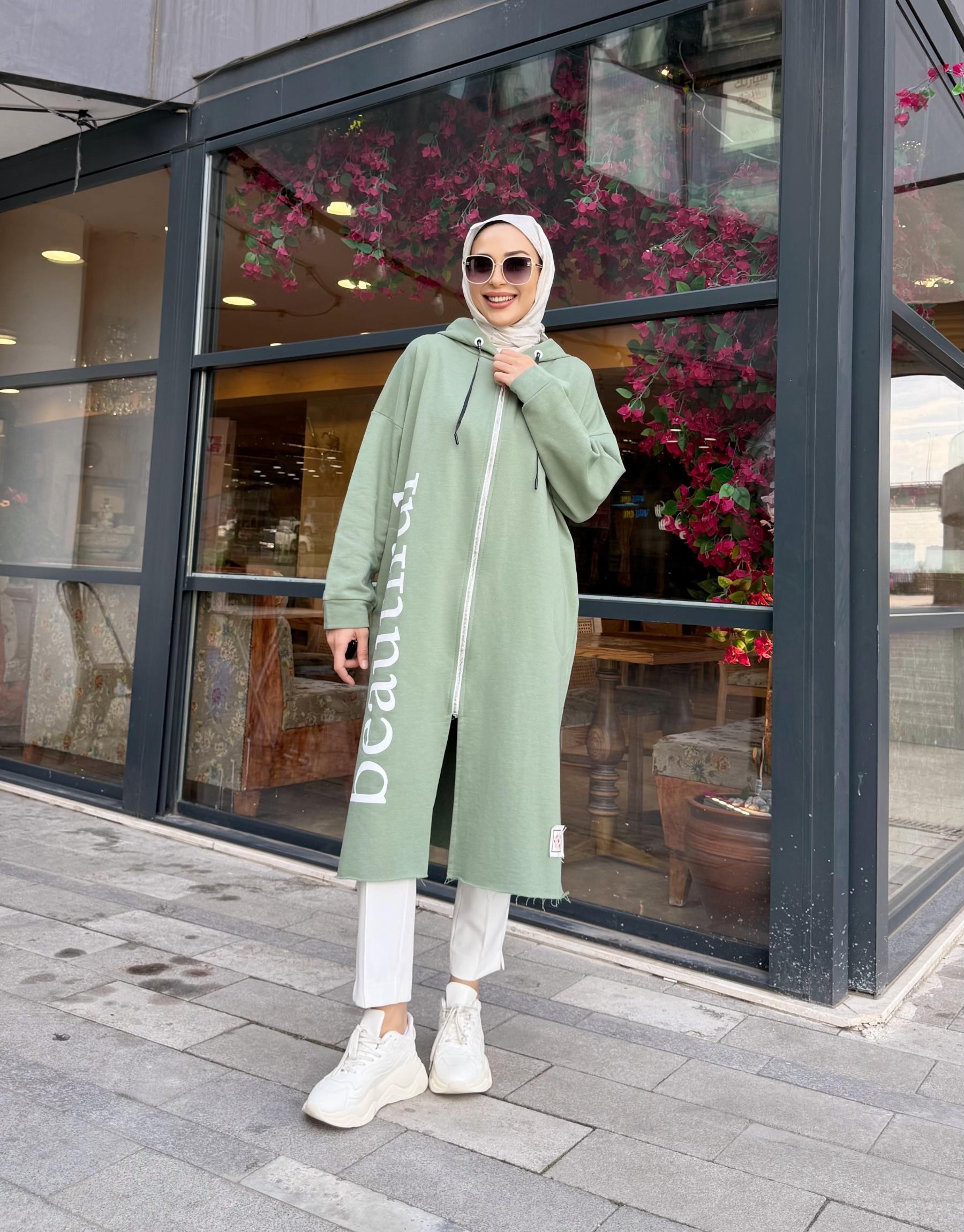 kadin ÜÇ İPLİK BASKI DETAY KAPÜŞONLU KAP