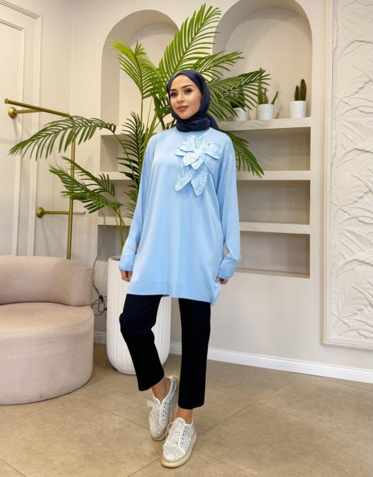 ÇİÇEKLİ TRİKO TUNİK BEBE MAVİSİ