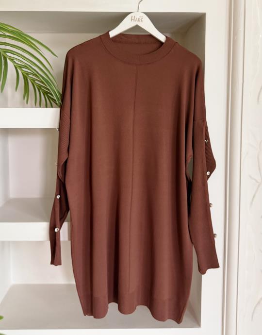 ÇİÇEKLİ TRİKO TUNİK KAHVE
