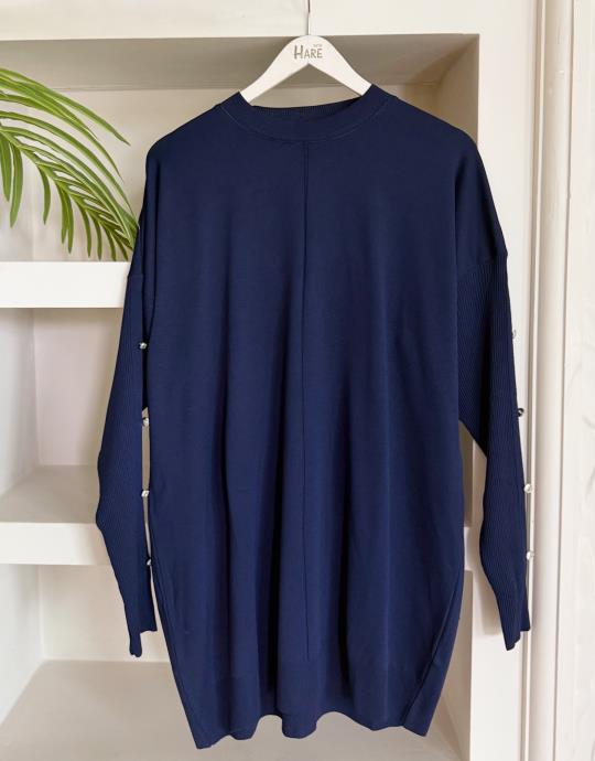 ÇİÇEKLİ TRİKO TUNİK EKRU