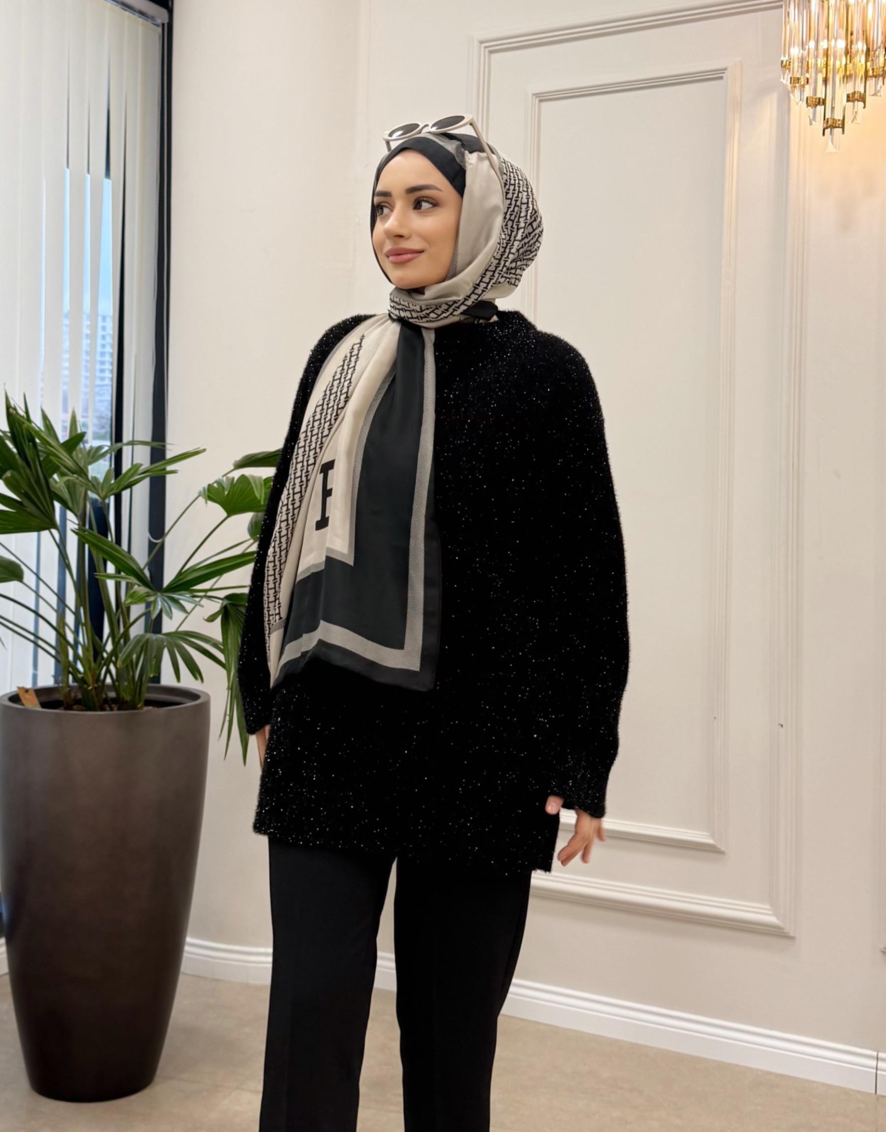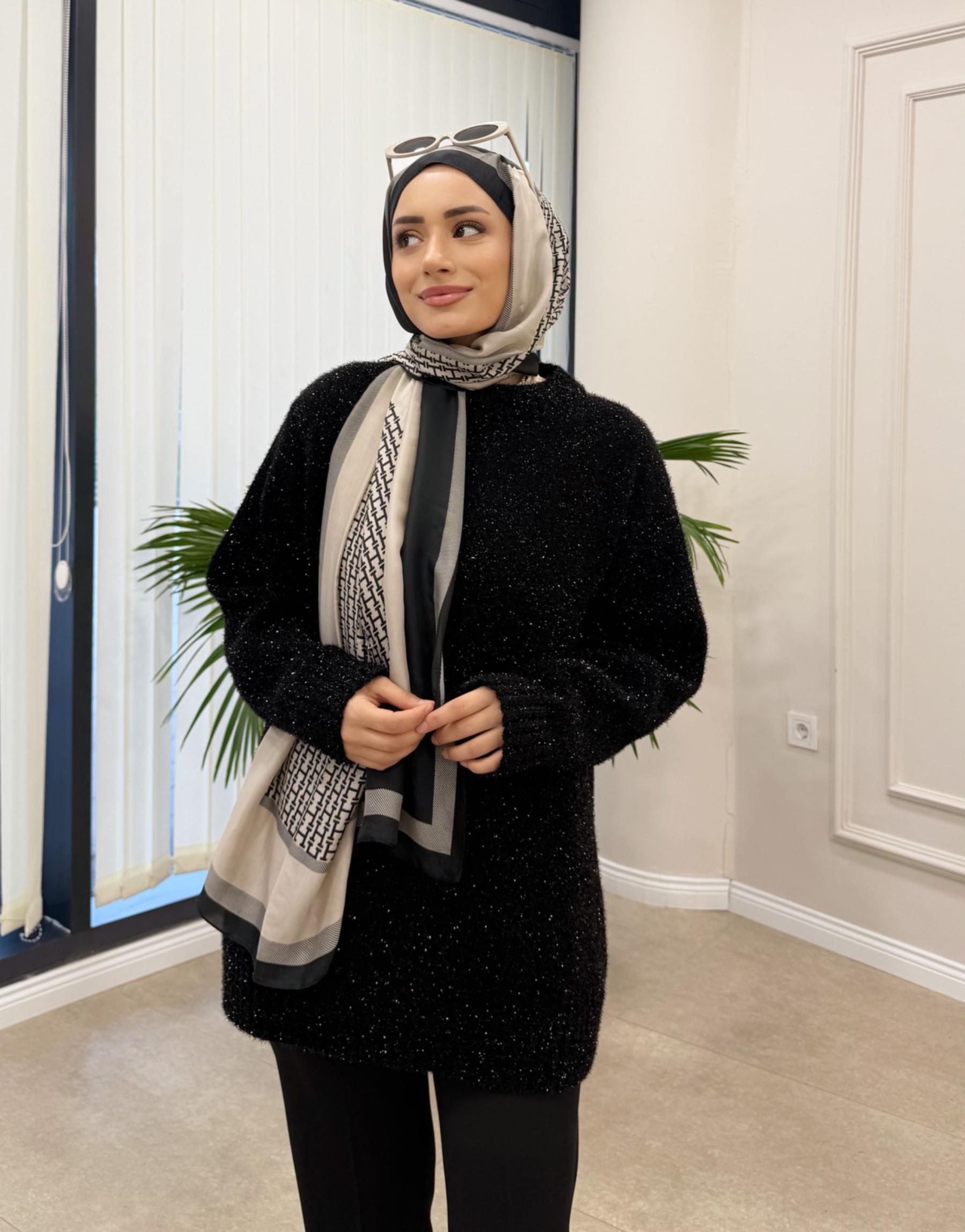 SERPME TAŞLI KAZAK SİYAH