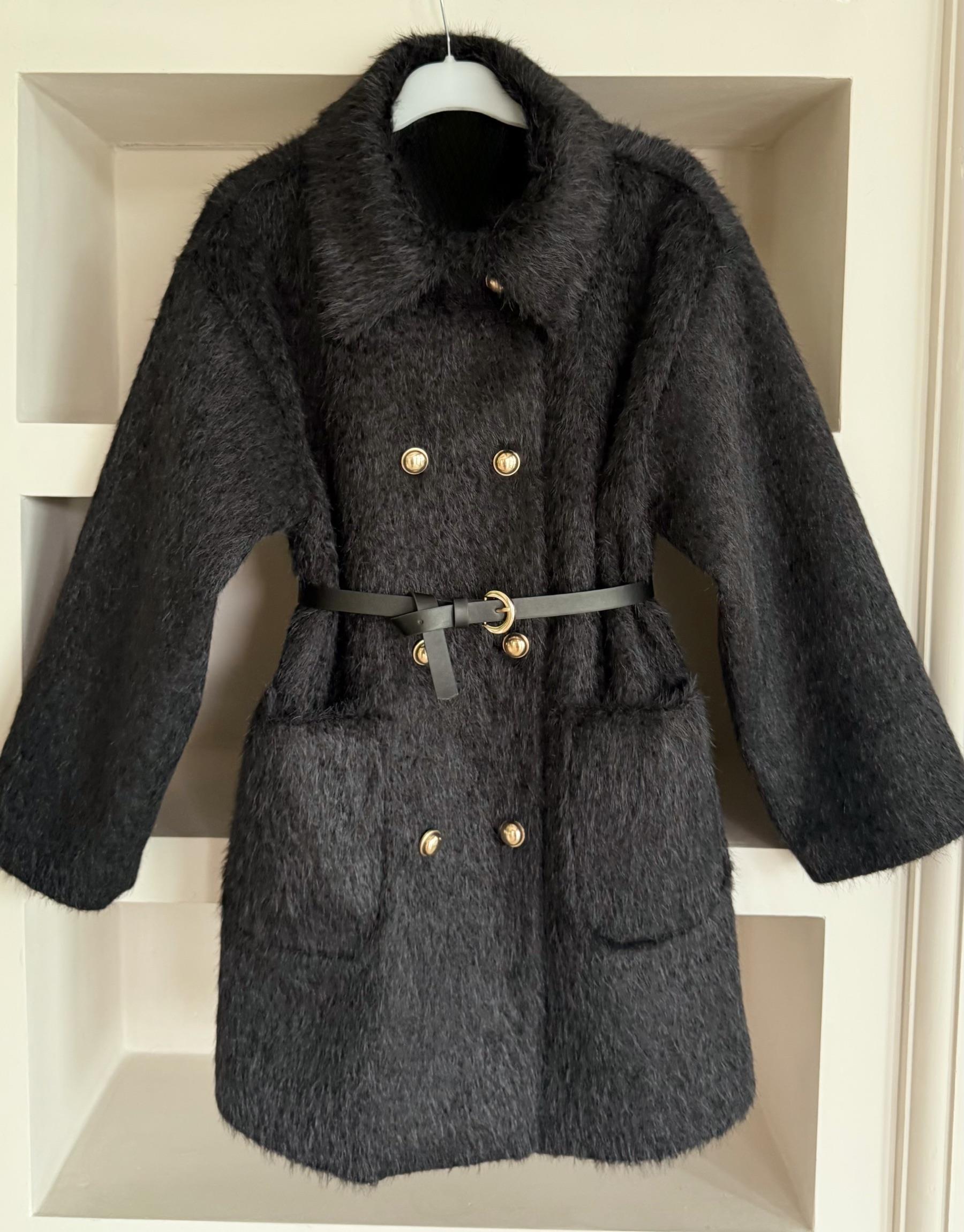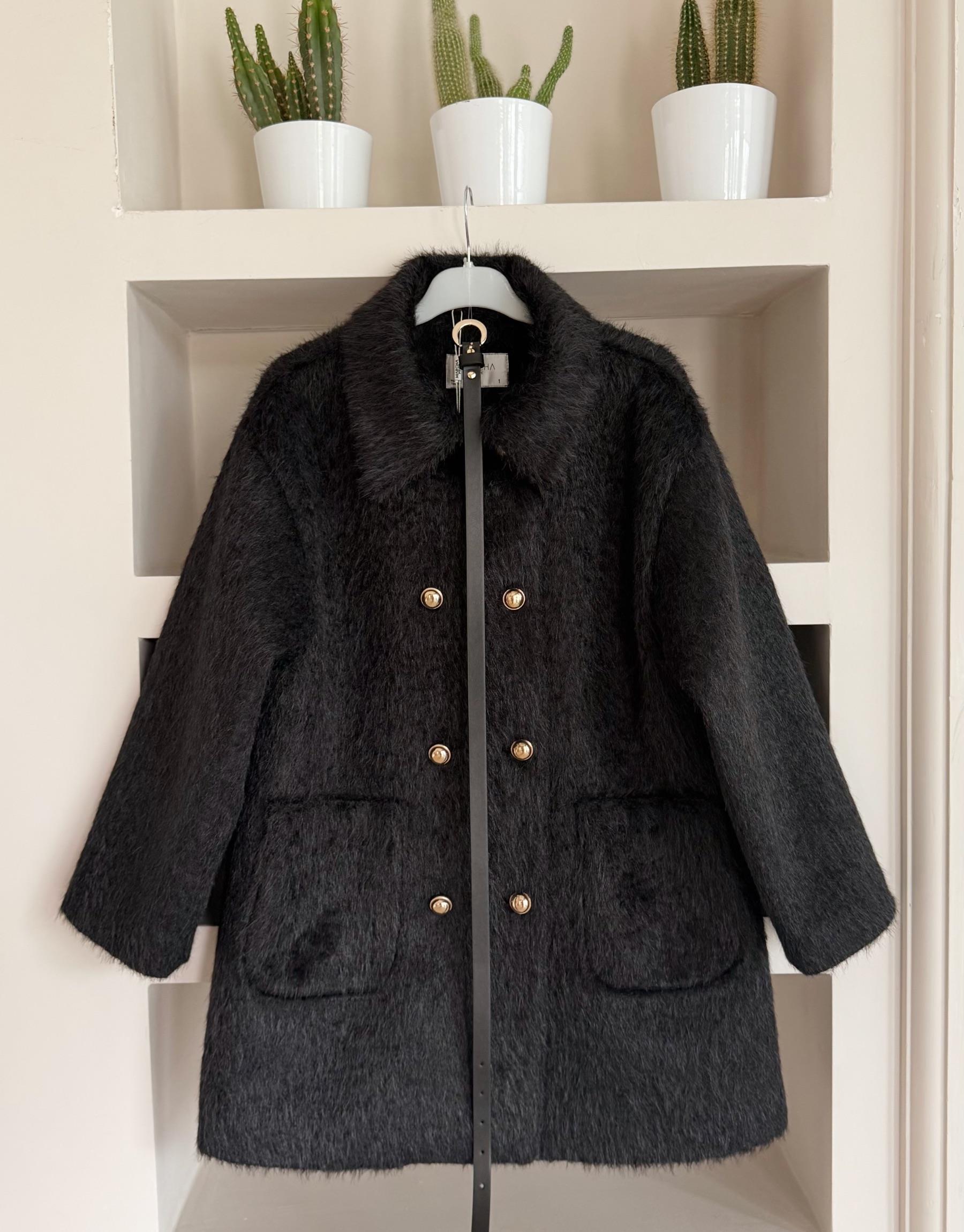 GOLD DÜĞME DETAY KÜRK CEKET SİYAH