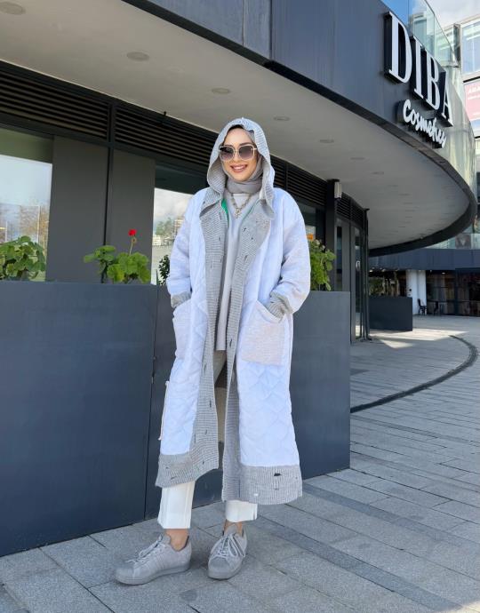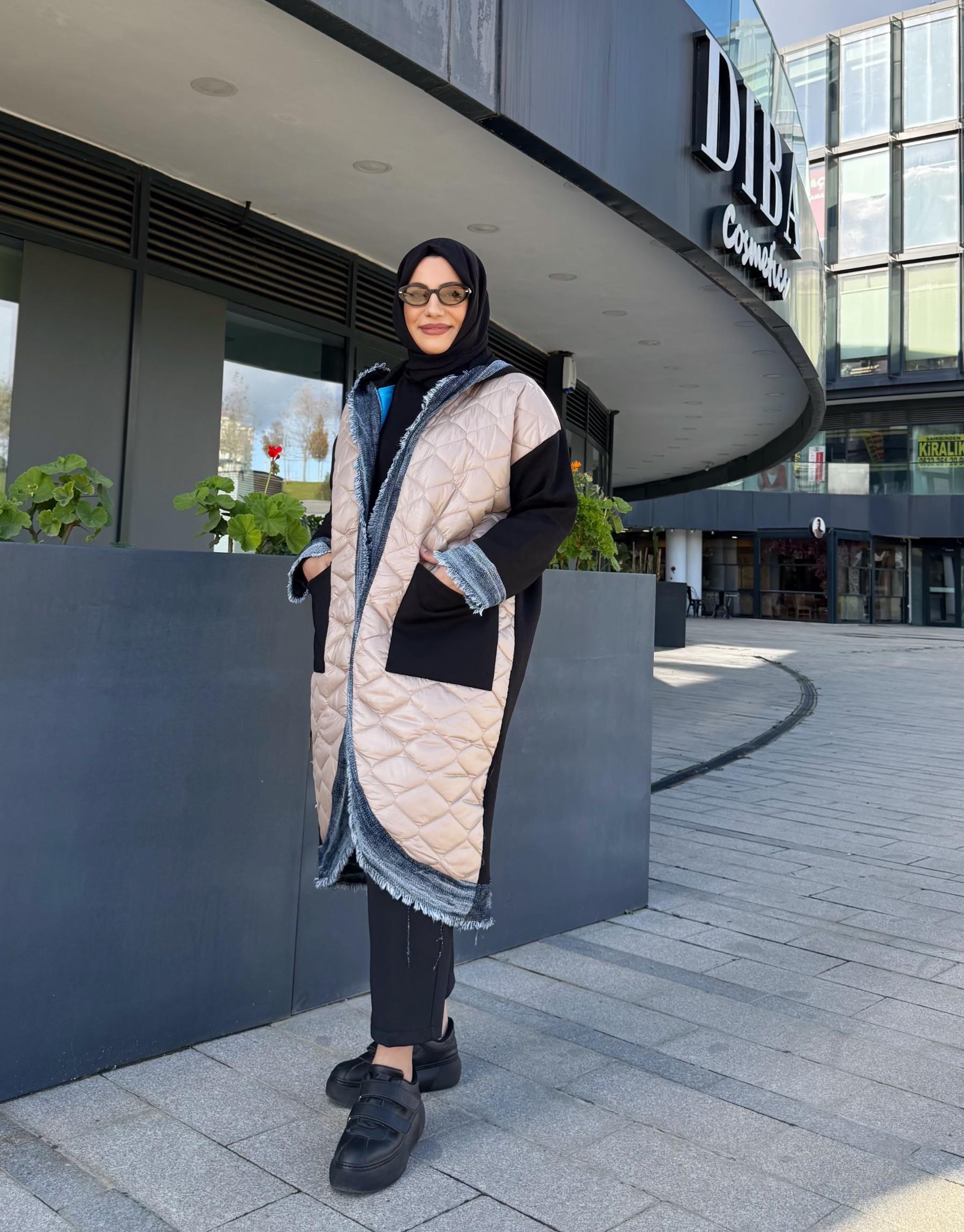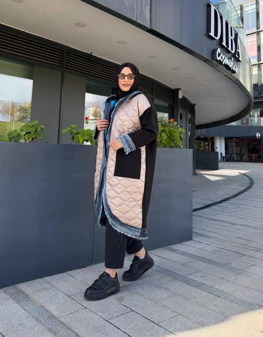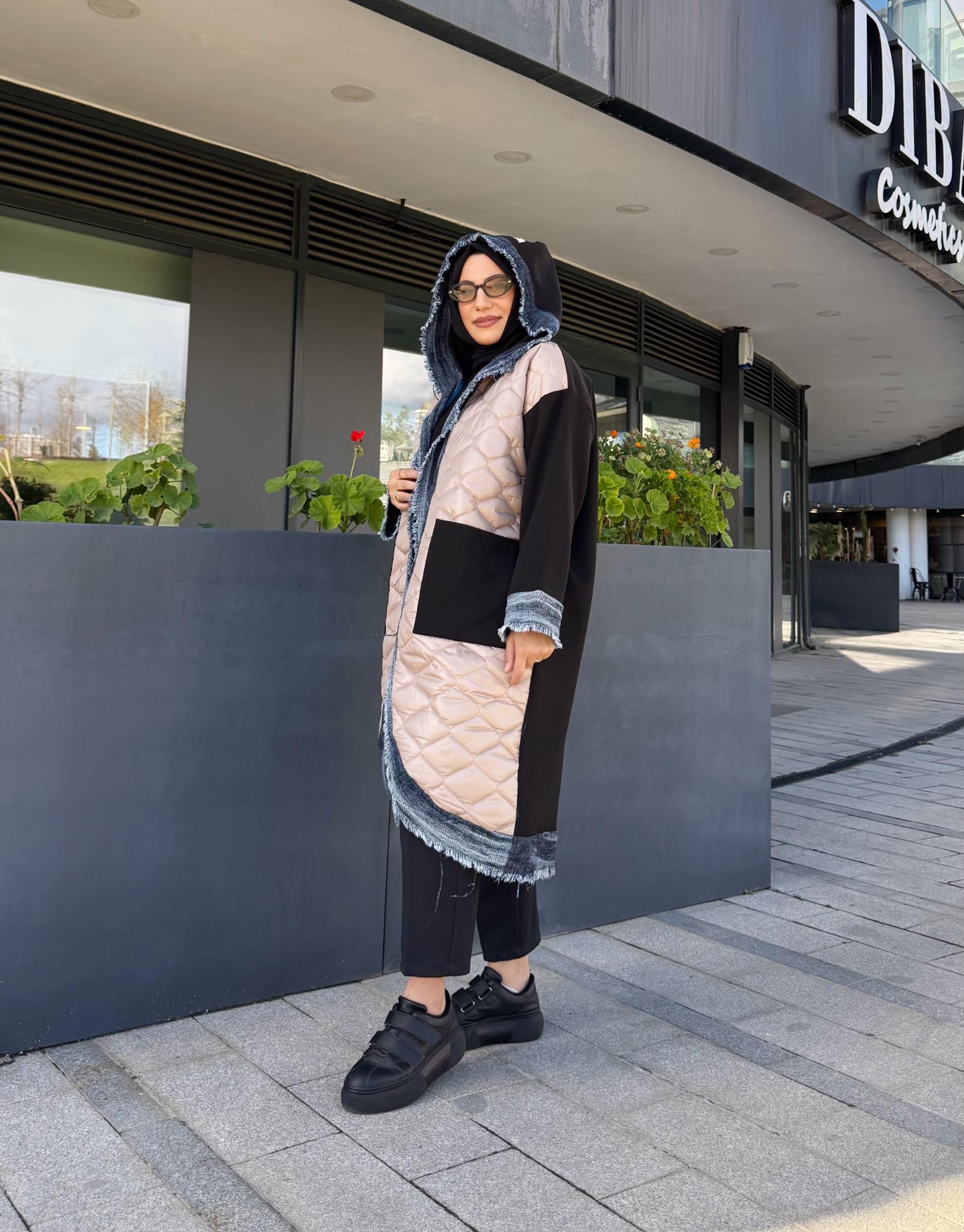 ÜÇ İPLİK BASKI DETAY KAPÜŞONLU KAP EKRU