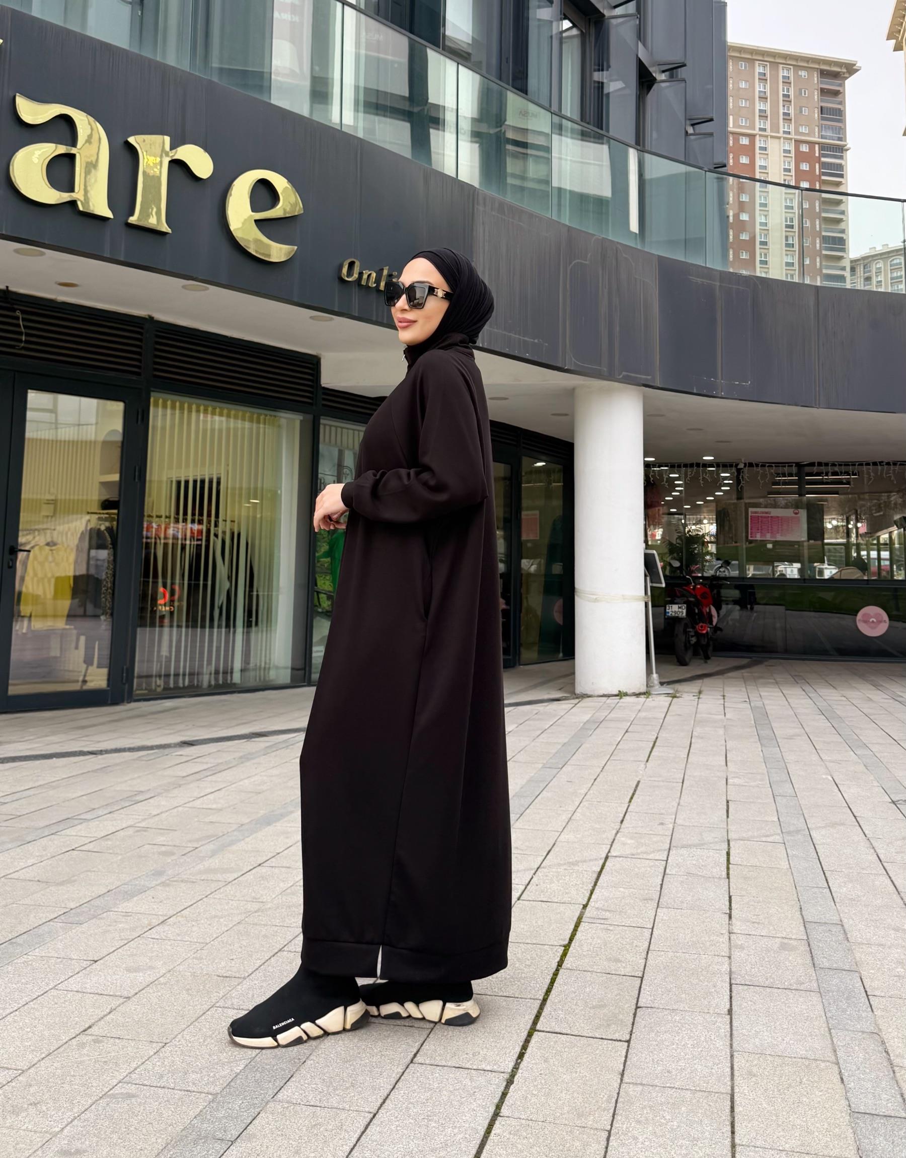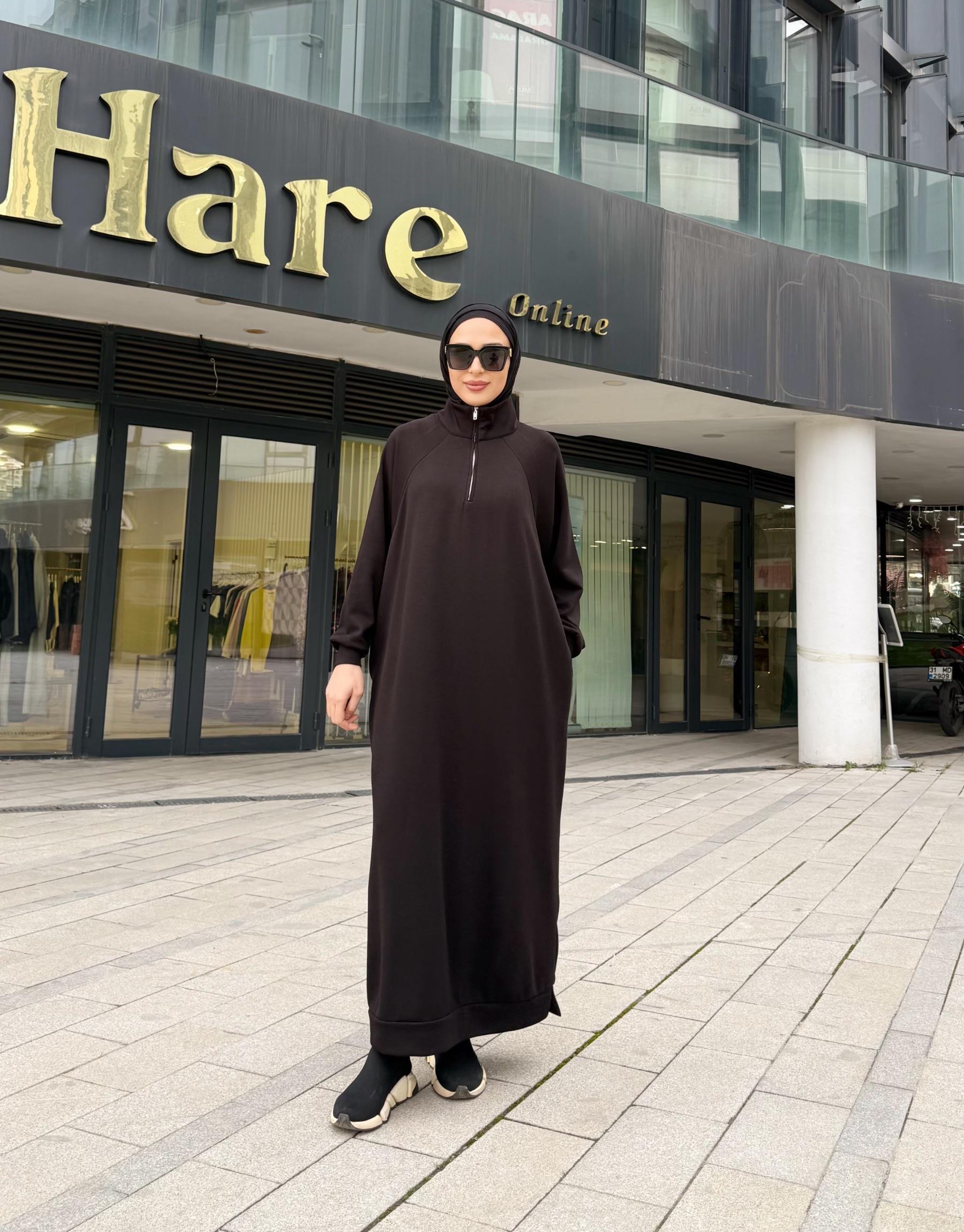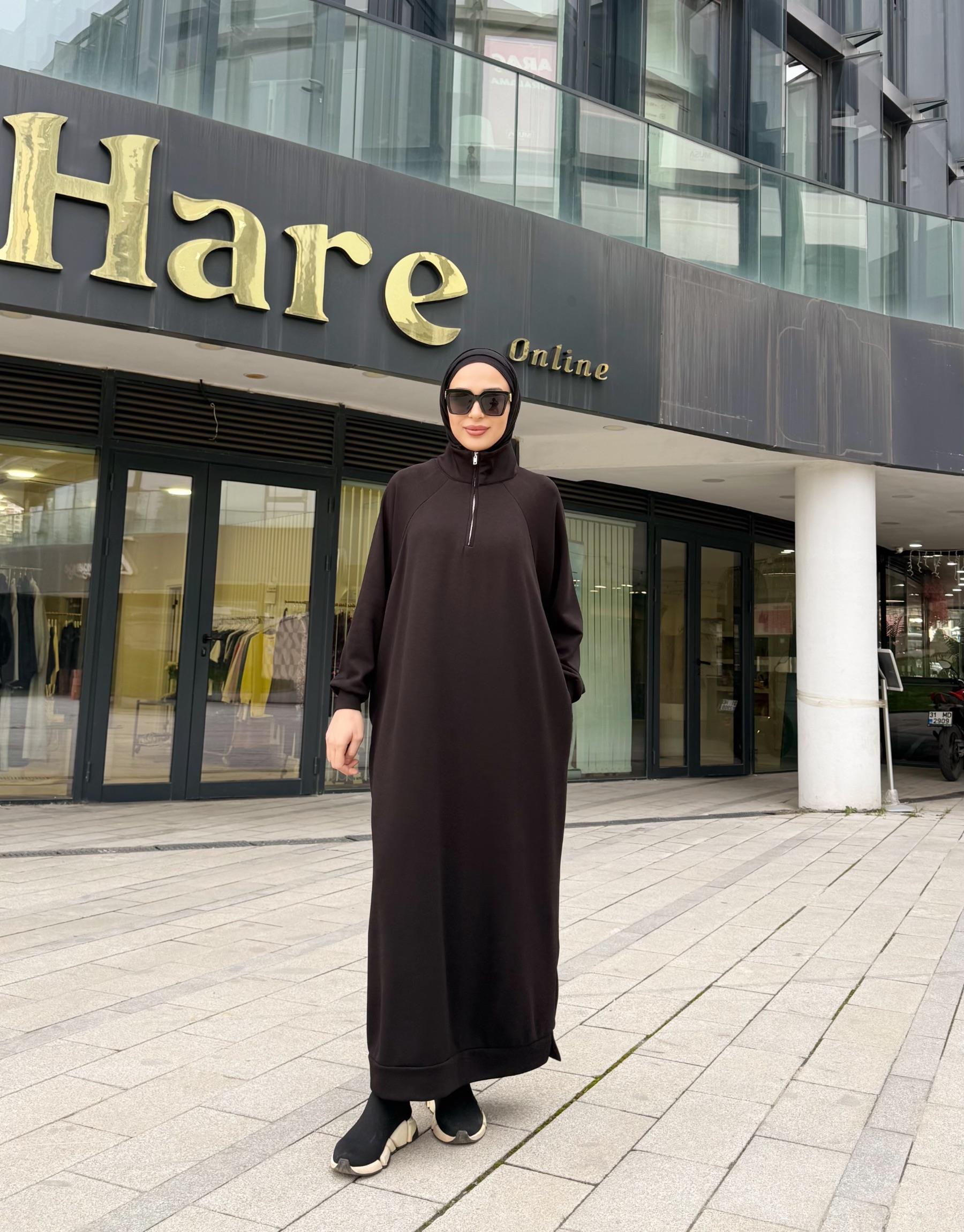 ŞERİT DETAY BASİC ELBİSE KAHVE