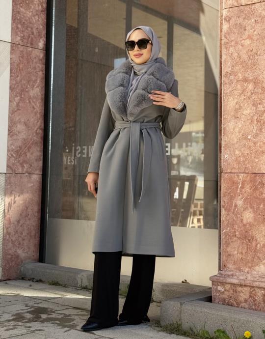 DÜĞMELİ KOL DETAY KABAN GRİ