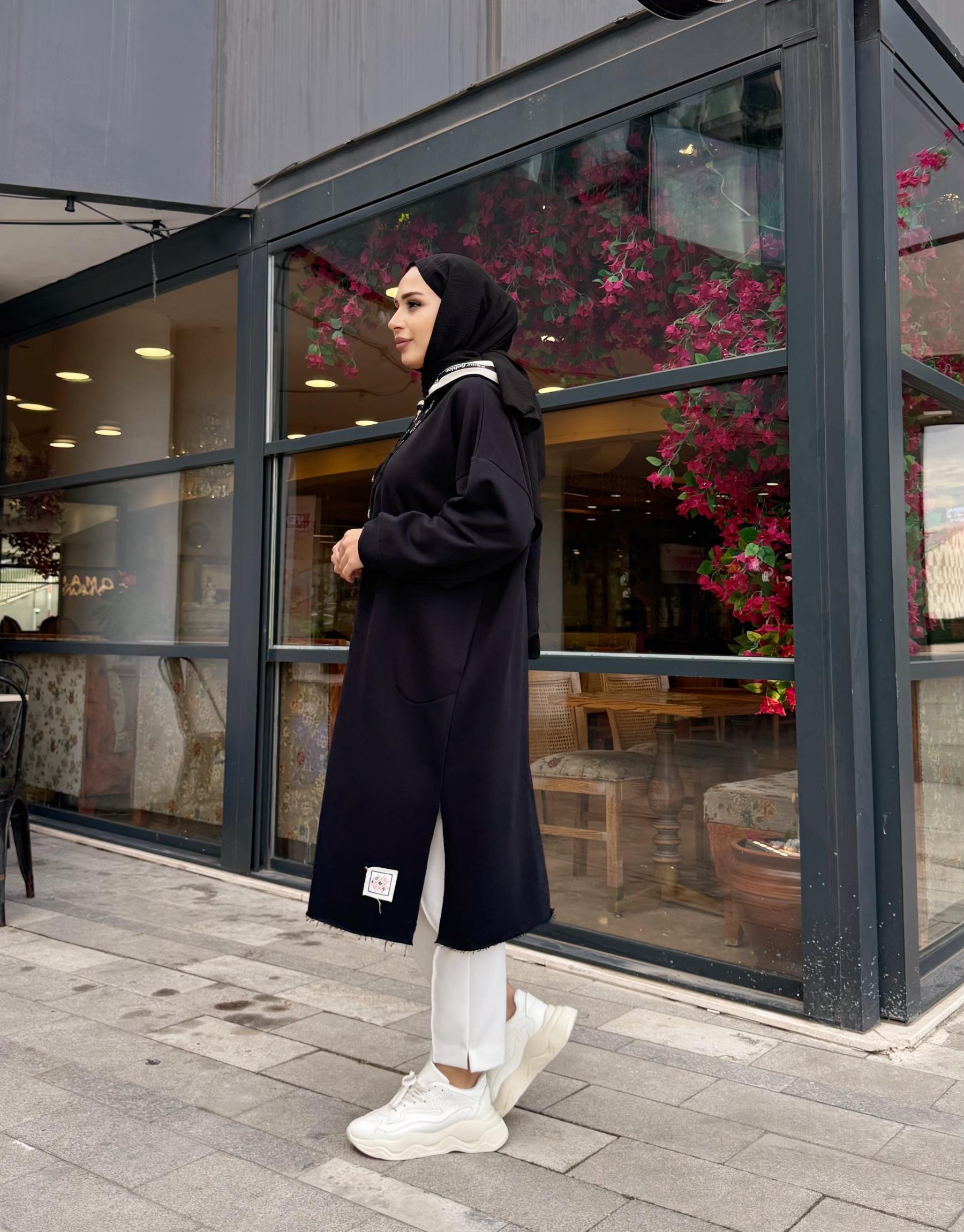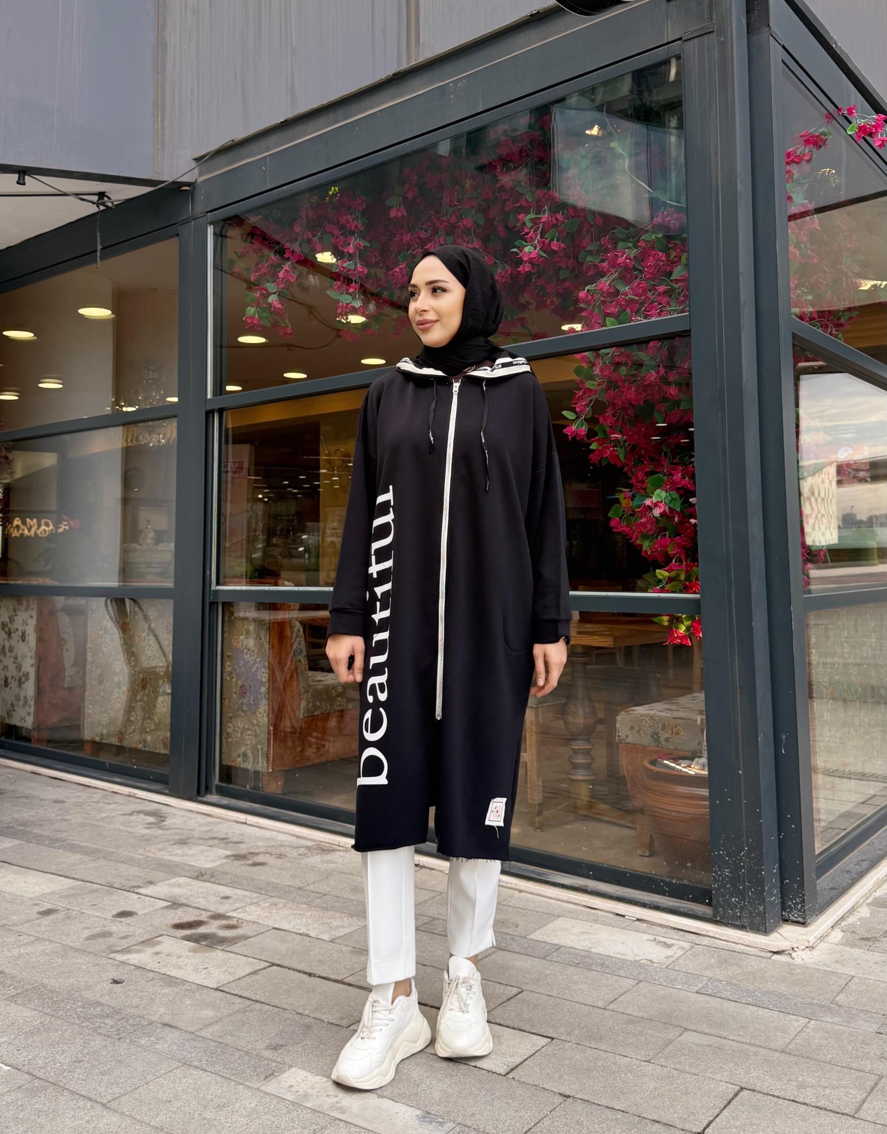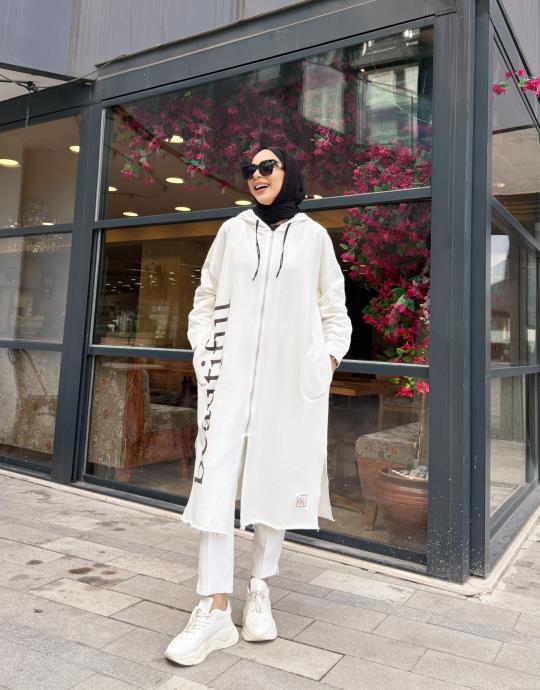 kadin ÜÇ İPLİK BASKI DETAY KAPÜŞONLU KAP