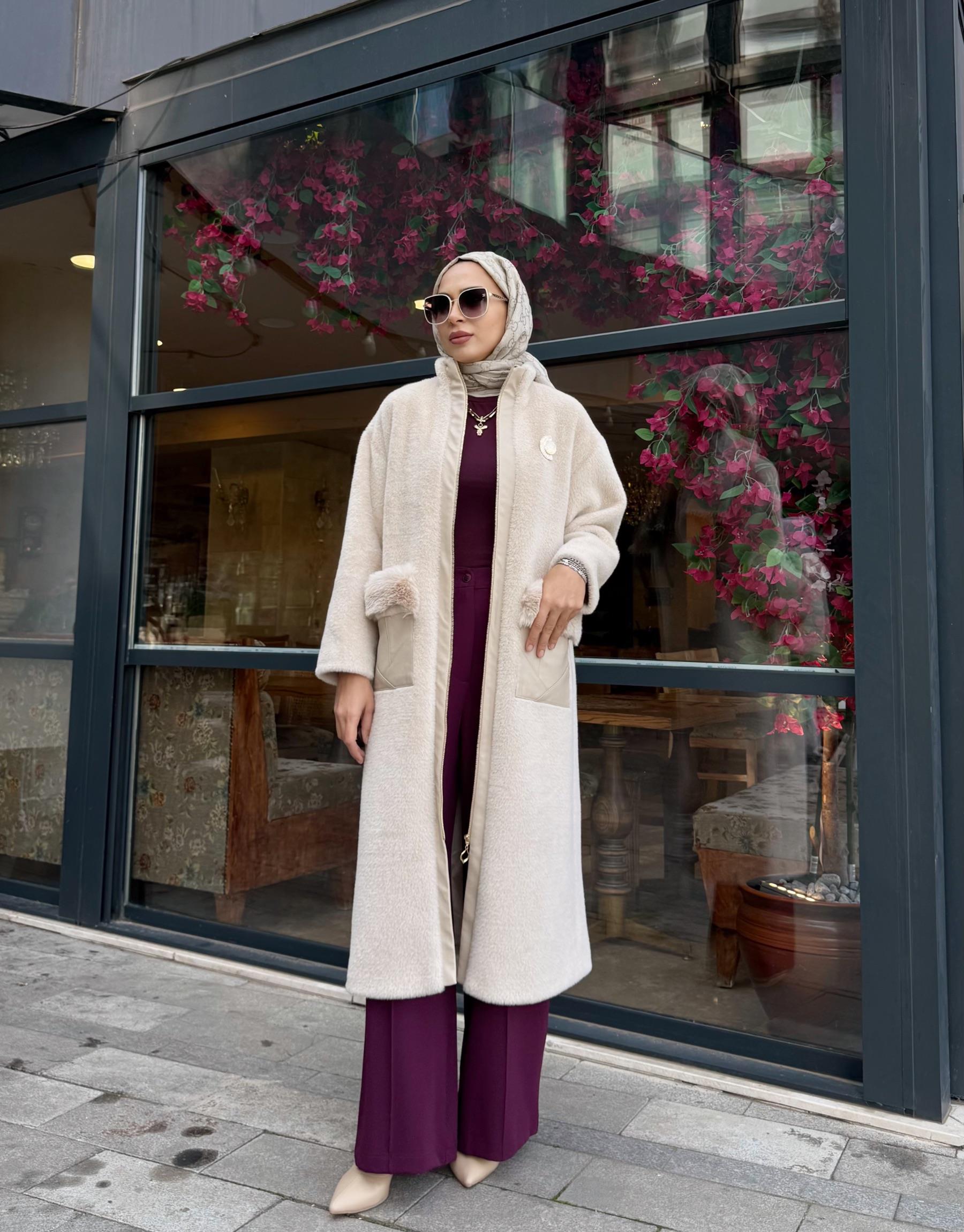 kadin DERİ GEÇİŞLİ ANGORA KABAN