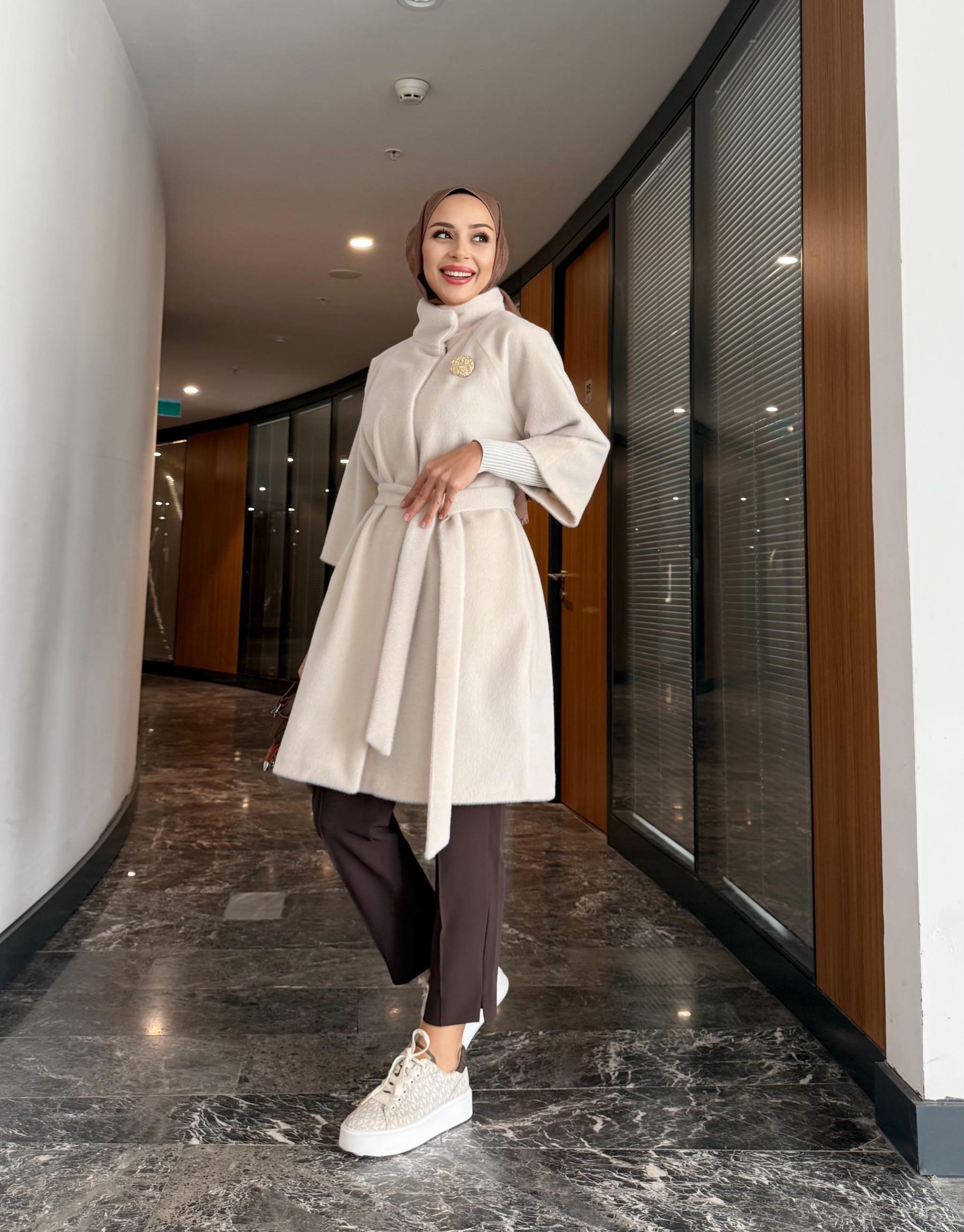 DÜĞMELİ KOL DETAY KABAN BEJ