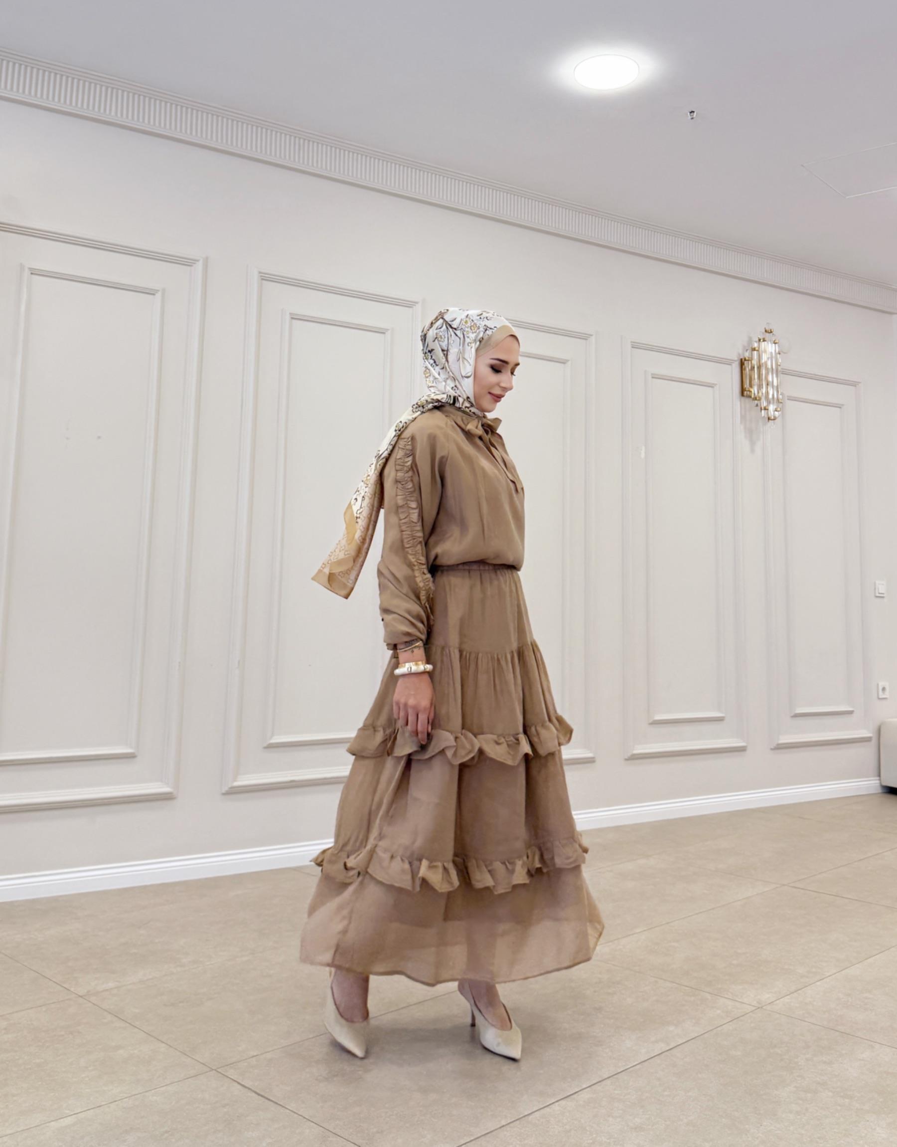 FULAR DETAYLI KAT KAT ETEKLİ TAKIM SARI