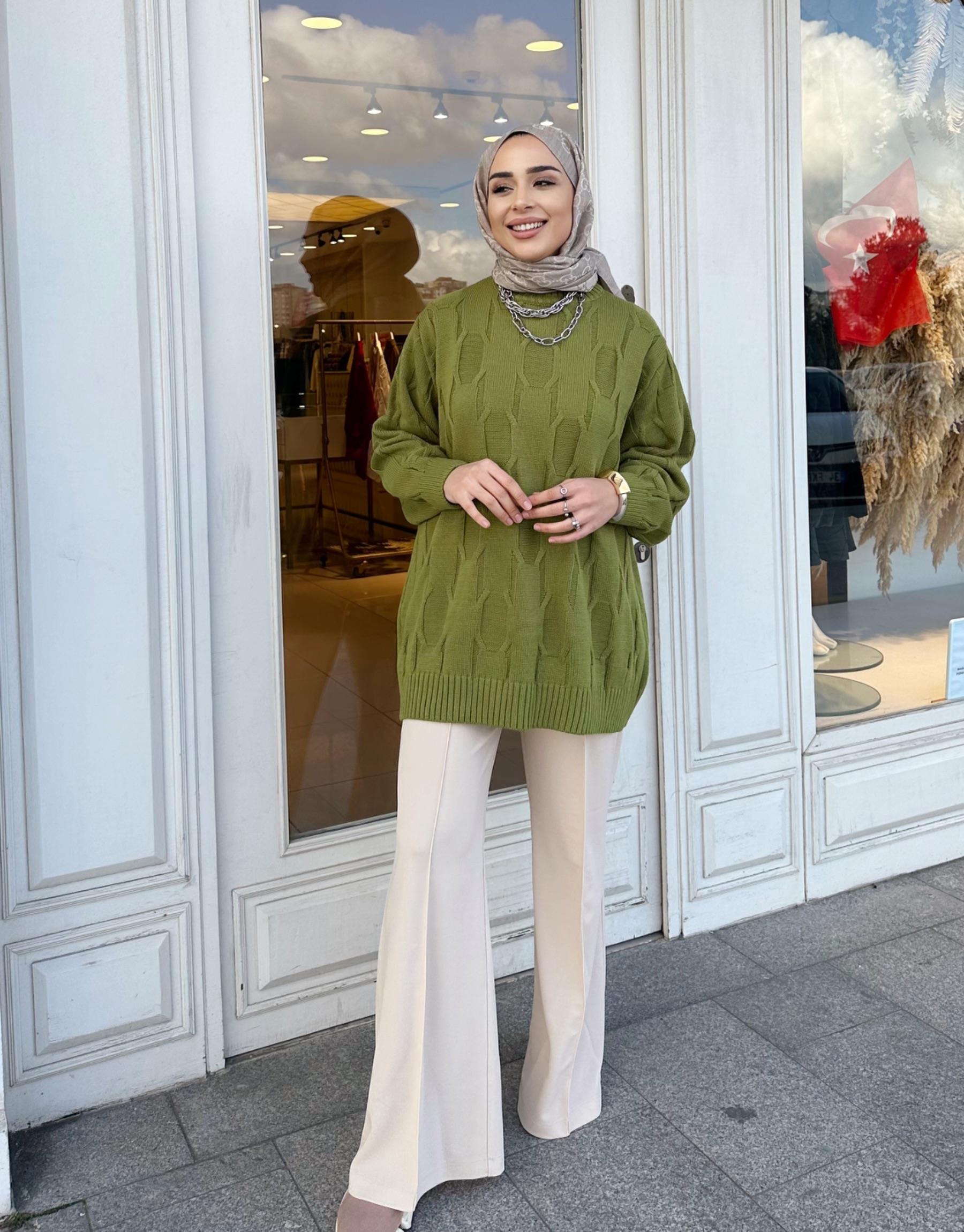 YESA ÇİZGİLİ BASİC TRİKO TUNİK YEŞİL