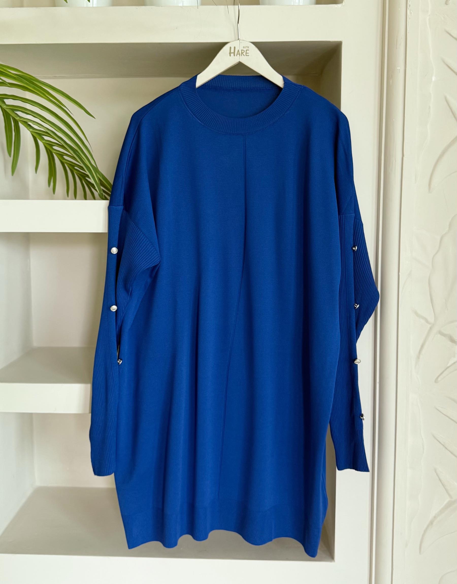 YESA ÇİZGİLİ BASİC TRİKO TUNİK SAKS